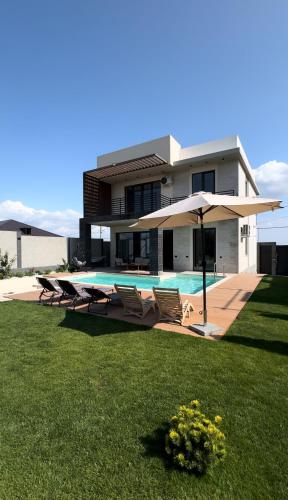 Featuring air-conditioned accommodation with a private pool, mountain view and a balcony, Villa Fontana House Yerevan Zovuni is set in Zovuni. This property offers access to a terrace, free private parking and free WiFi. Guests can make use of a garden.The spacious holiday home is fitted with 2 bedrooms, a flat-screen TV with streaming services and a fully equipped kitchen that provides guests with a dishwasher, an oven, a washing machine and a fridge. Guests can take in the ambience of the surroundings from an outdoor dining area or keep themselves warm by the fireplace on colder days. At the holiday home, there is a dressing room for guests to change in.Guests can relax near the outdoor fireplace at the holiday home.Armenian Opera and Ballet Theatre is 11 km from Villa Fontana House Yerevan Zovuni, while Republic Square is 12 km away. Zvartnots International Airport is 18 km from the property.