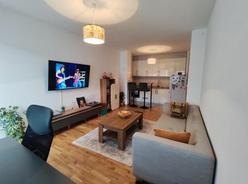 Providing city views Apartmani Kaić in Livno offers accommodations and a garden. With garden views this accommodation features a patio. The apartment provides rooms with air conditioning free private parking and free Wifi. The apartment provides guests with a terrace mountain views a seating area a flat-screen TV a fully equipped kitchen with an oven and a microwave and a private bathroom with shower and a hair dryer. A fridge a stovetop and kitchenware are also provided as well as a kettle. At the apartment complex all units are fitted with bed linen and towels. Skiing and cycling can be enjoyed nearby while a car rental service ski-to-door access and a ski pass sales point are also available on-site. The nearest airport is Split 65 miles from Apartmani Kaić and the property offers a paid airport shuttle service.