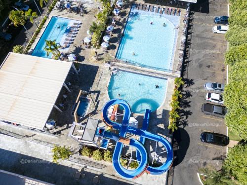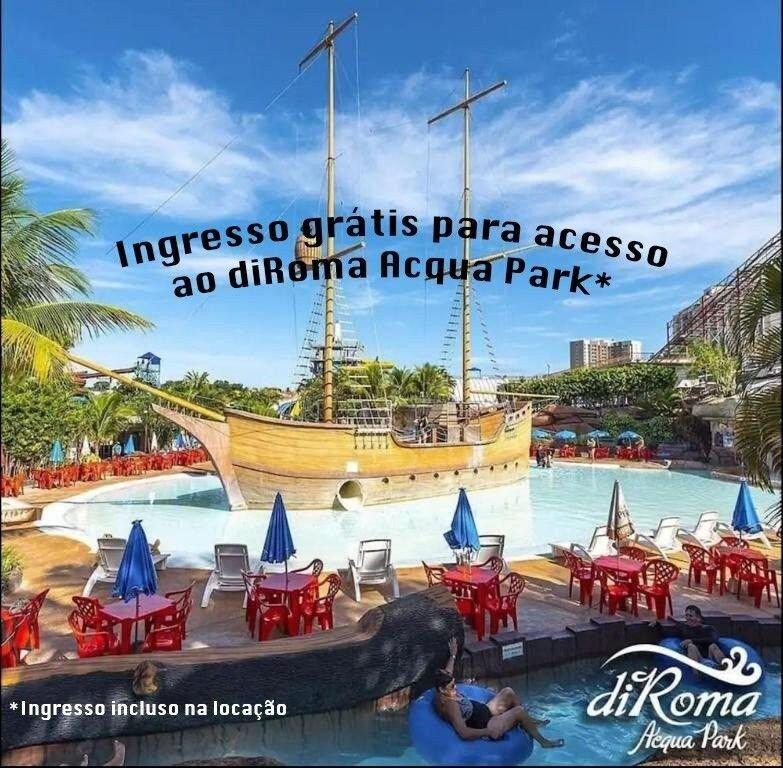 1.7 miles from Acqua Park Di Roma in Caldas Novas, Lacqua Diroma II - 139 features accommodations with access to a hot spring bath and fitness room. There's a restaurant and bar, and guests can enjoy the water park. There's a year-round outdoor pool and guests can use free Wifi and free private parking. The air-conditioned apartment is composed of 1 separate bedroom, a living room, a fully equipped kitchenette with a microwave and stovetop, and 1 bathroom. A flat-screen TV with satellite channels is available. Daily room service is also available. There is an on-site snack bar. Hot Park is 16 miles from the apartment, while Liberty Square is 2.4 miles from the property. Caldas Novas Airport is 2.5 miles away.