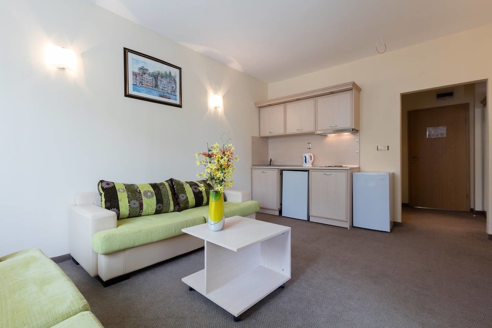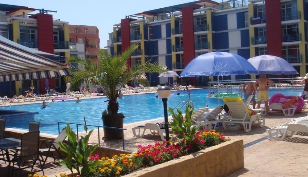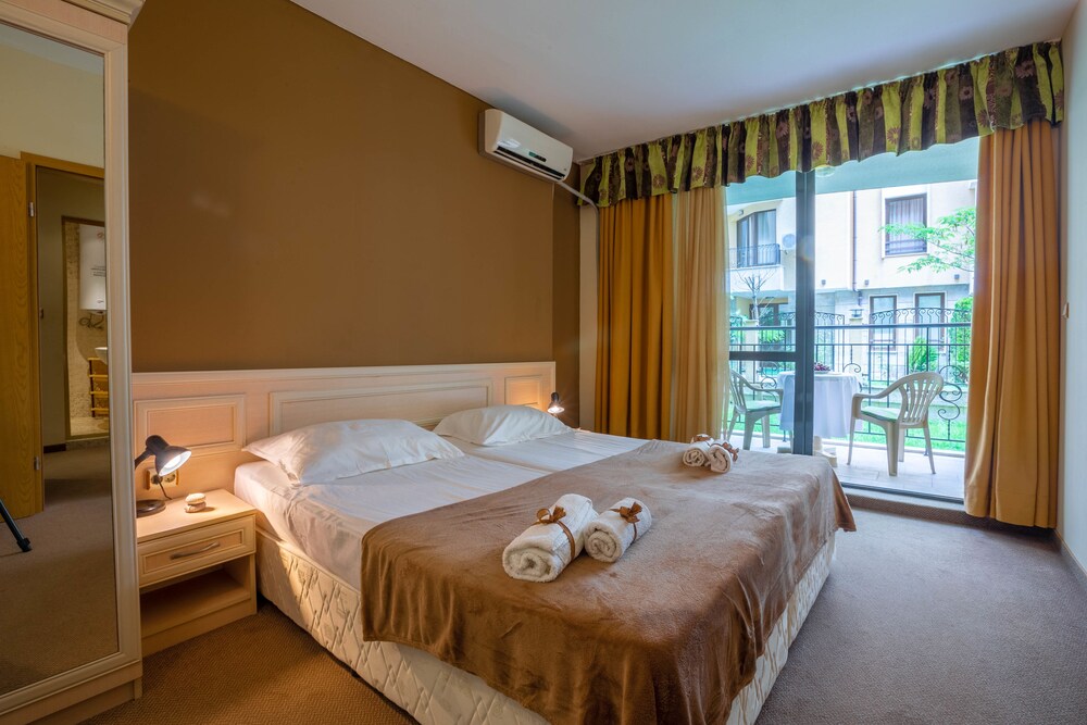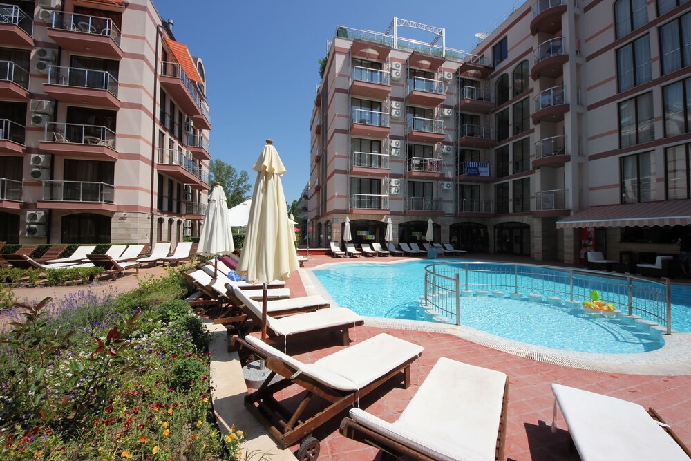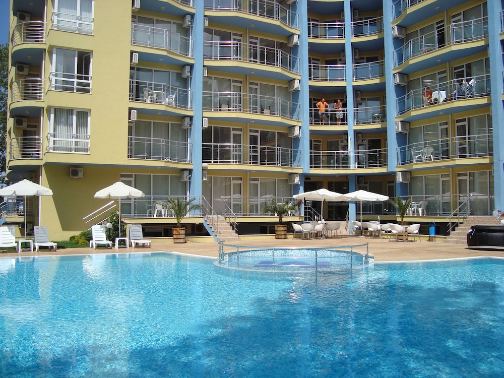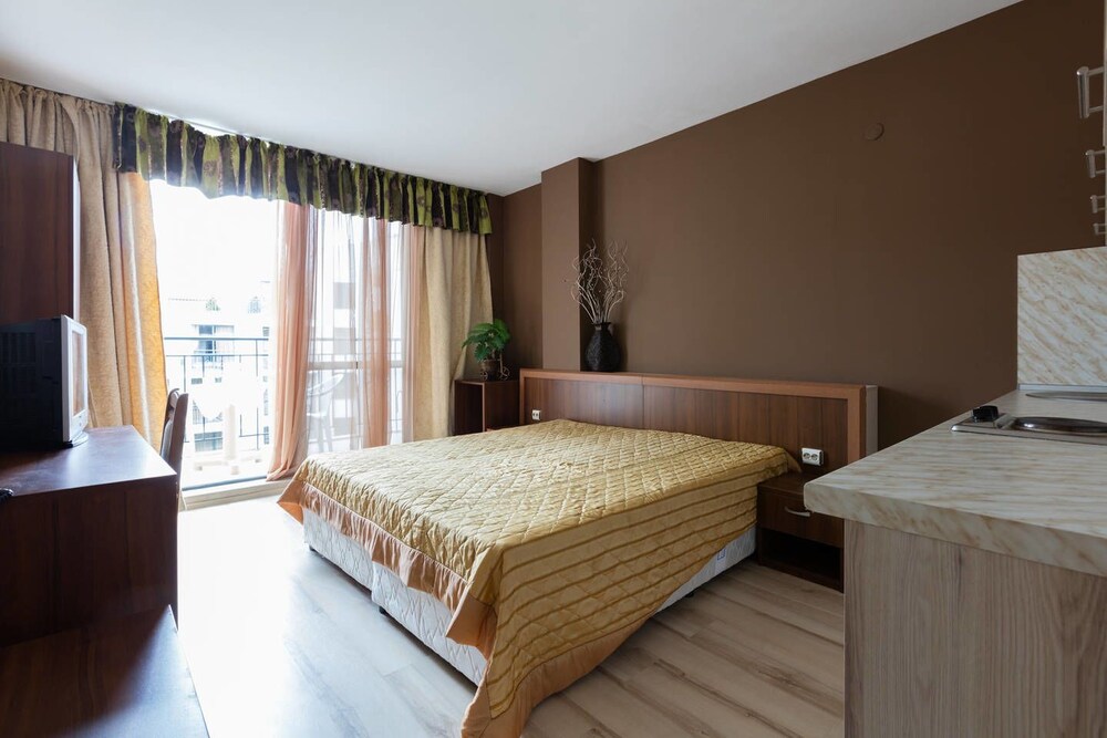 Enjoy recreation amenities such as an outdoor pool or take in the view from a terrace. Additional features at this aparthotel include complimentary wireless Internet access and concierge services.At this aparthotel, enjoy a satisfying meal at the restaurant. Relax with your favorite drink at the bar/lounge or the poolside bar.Featured amenities include dry cleaning/laundry services, a 24-hour front desk, and luggage storage. A roundtrip airport shuttle is provided for a surcharge (available 24 hours), and free self parking is available onsite.Make yourself comfortable in this air-conditioned apartment, featuring a kitchen with a refrigerator and a stovetop. There's a private balcony or patio. A kitchenette makes it easy to prepare your meals. Complimentary wireless Internet access keeps you connected, and a flat-screen television is provided for your entertainment.Distances are displayed to the nearest 0.1 mile and kilometer. Sunny Beach - 0.8 km / 0.5 mi Casino Hrizantema - 0.8 km / 0.5 mi Sunny Beach South - 1.2 km / 0.8 mi Luna Park - 1.4 km / 0.9 mi Nessebar Stadium - 2.1 km / 1.3 mi Action Aquapark - 2.6 km / 1.6 mi Nessebar South Beach - 3.7 km / 2.3 mi Aqua Paradise - 4 km / 2.5 mi Ravda Central Beach - 4.2 km / 2.6 mi Archaeological Museum - 4.5 km / 2.8 mi Church of Christ Pantocrator - 4.7 km / 2.9 mi Church of St John Aliturgetos - 4.7 km / 2.9 mi Church of Saint John the Baptist - 4.7 km / 2.9 mi Nessebar Old Town Beach - 4.8 km / 3 mi Church of the Holy Archangels Michael and Gabriel - 4.9 km / 3 mi