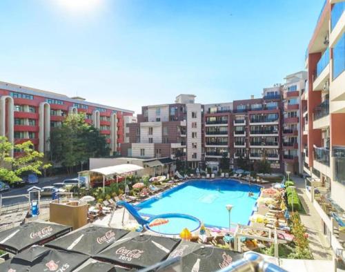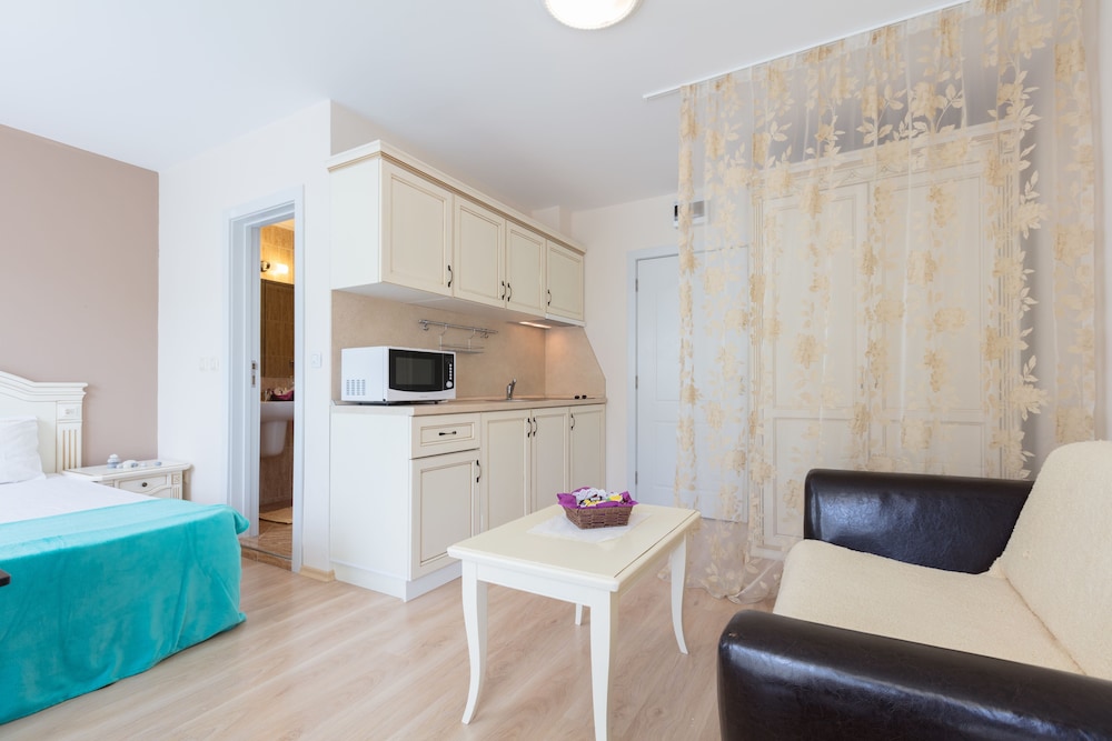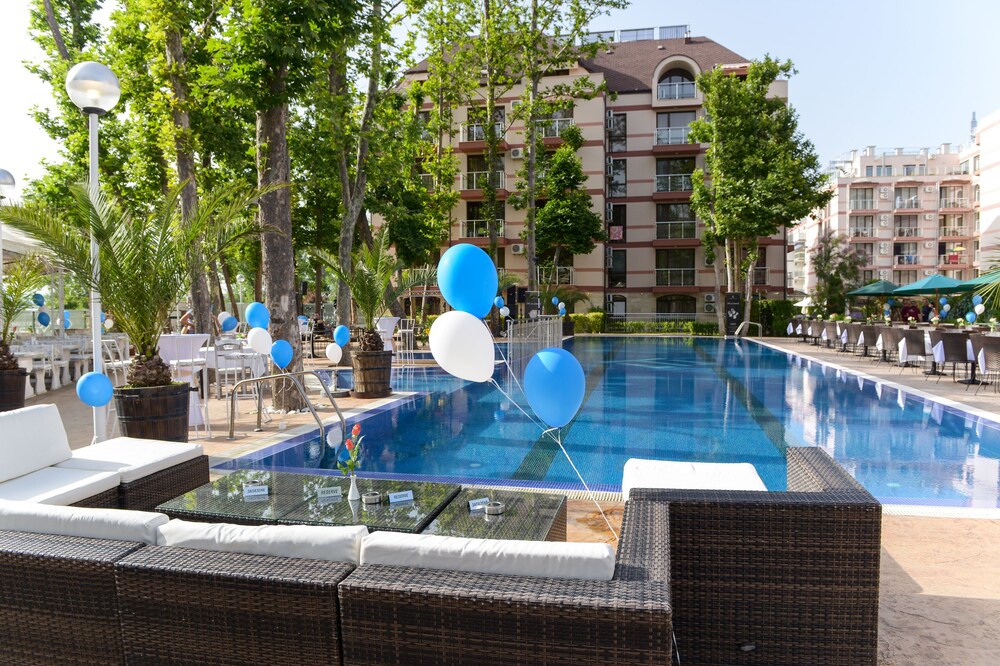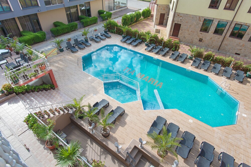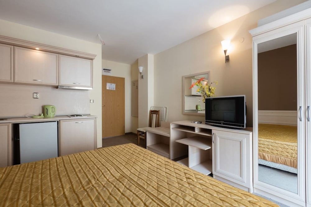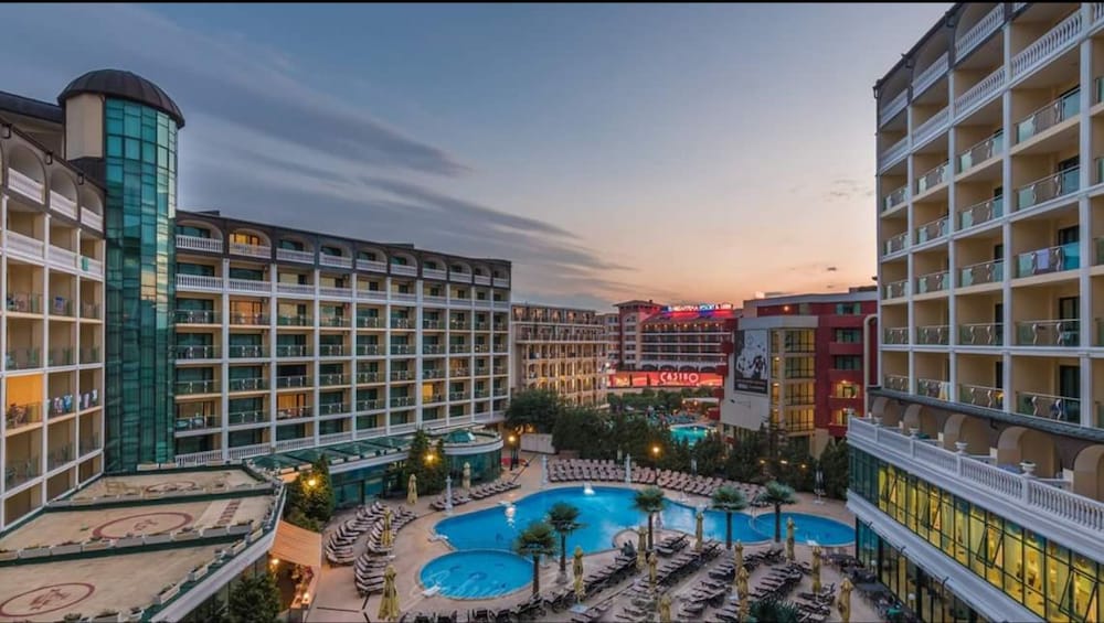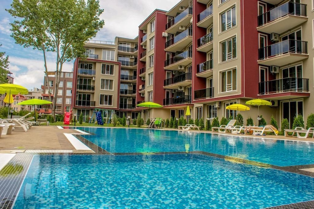 Enjoy recreation amenities such as an outdoor pool or take in the view from a terrace. Additional features at this aparthotel include complimentary wireless Internet access and concierge services.At this aparthotel, enjoy a satisfying meal at the restaurant. Relax with your favorite drink at the bar/lounge or the poolside bar.Featured amenities include dry cleaning/laundry services, a 24-hour front desk, and luggage storage. A roundtrip airport shuttle is provided for a surcharge (available 24 hours), and free self parking is available onsite.Make yourself comfortable in this air-conditioned apartment, featuring a kitchen with a refrigerator and a stovetop. There's a private balcony or patio. A kitchenette makes it easy to prepare your meals. Complimentary wireless Internet access keeps you connected, and a flat-screen television is provided for your entertainment.Distances are displayed to the nearest 0.1 mile and kilometer. Sunny Beach - 0.8 km / 0.5 mi Casino Hrizantema - 0.8 km / 0.5 mi Sunny Beach South - 1.2 km / 0.8 mi Luna Park - 1.4 km / 0.9 mi Nessebar Stadium - 2.1 km / 1.3 mi Action Aquapark - 2.6 km / 1.6 mi Nessebar South Beach - 3.7 km / 2.3 mi Aqua Paradise - 4 km / 2.5 mi Ravda Central Beach - 4.2 km / 2.6 mi Archaeological Museum - 4.5 km / 2.8 mi Church of Christ Pantocrator - 4.7 km / 2.9 mi Church of St John Aliturgetos - 4.7 km / 2.9 mi Church of Saint John the Baptist - 4.7 km / 2.9 mi Nessebar Old Town Beach - 4.8 km / 3 mi Church of the Holy Archangels Michael and Gabriel - 4.9 km / 3 mi