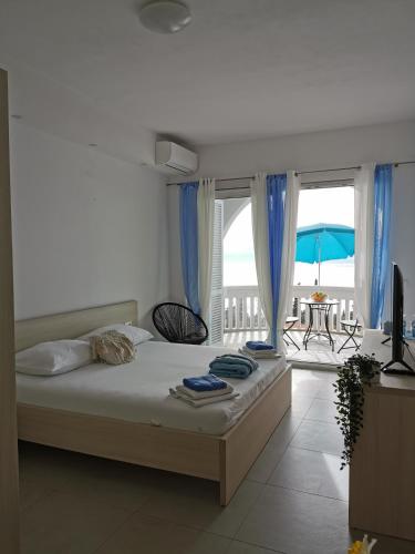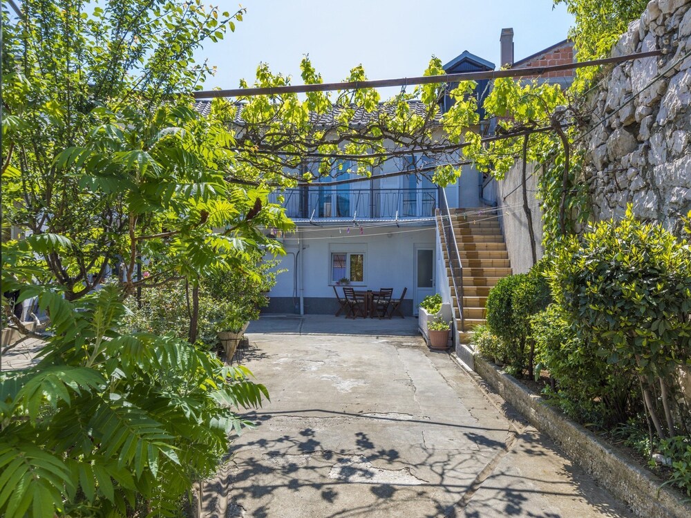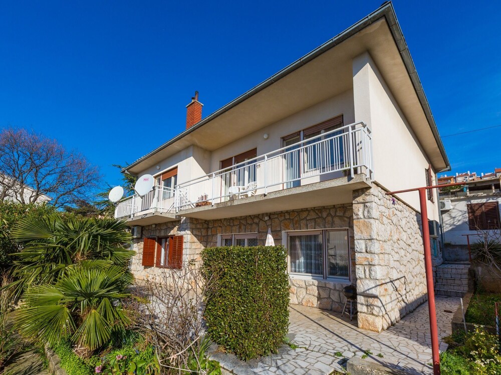 2-room apartment 50 m2, on the upper ground floor, south facing position. Living/dining room 30 m2 with 1 double sofabed (140 cm, length 200 cm), satellite TV (flat screen), air conditioning. Exit to the balcony. 1 room with 2 beds (90 cm, length 190 cm). Open kitchen (2 hot plates, oven, microwave, electric coffee machine). Shower/bidet/WC. Electric heating, forced-air heating (extra). Balcony 7 m2. Terrace furniture, deck chairs (2). View of the sea. Facilities: washing machine, iron, baby cot, hair dryer. Internet (WiFi, free).