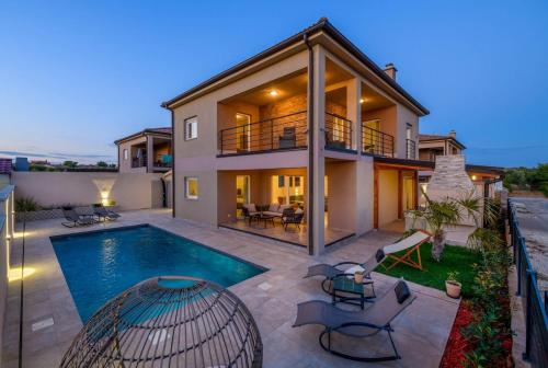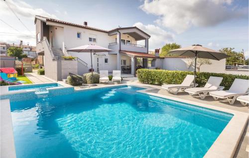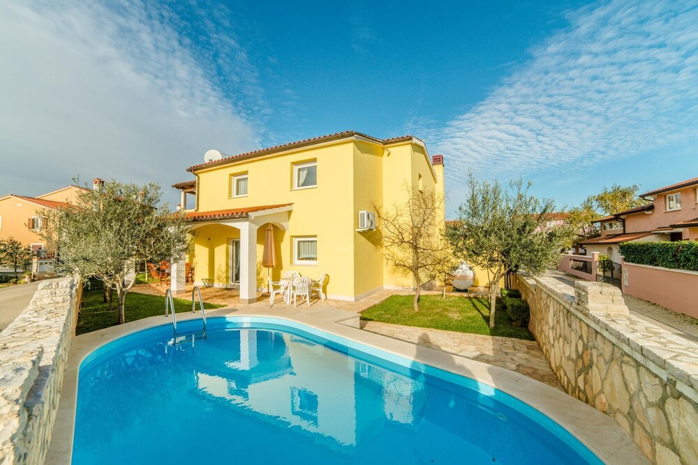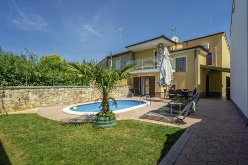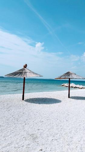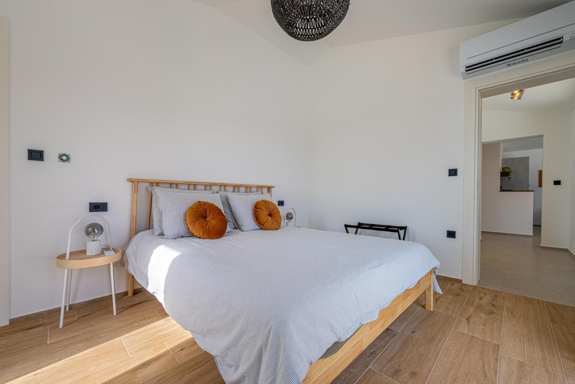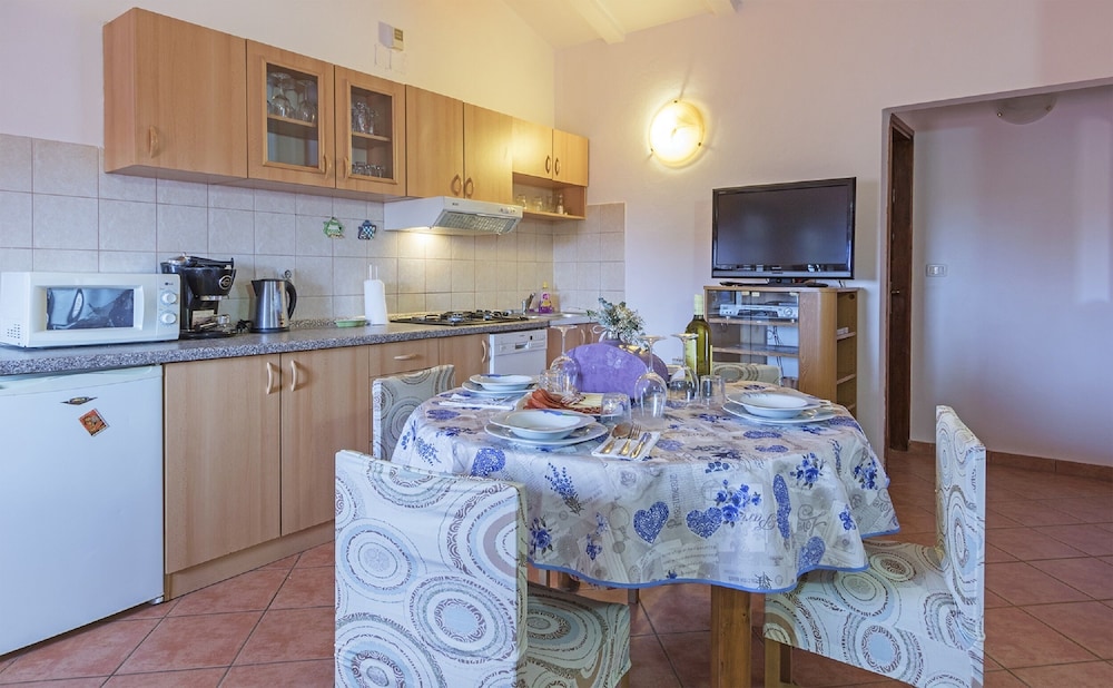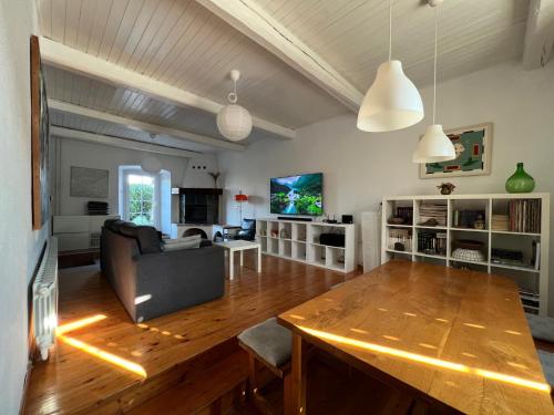 6-room house 150 m2 on 2 levels. Living/dining room 60 m2 with open-hearth fireplace and satellite TV (flat screen), DVD. Exit to the terrace. 1 room with 2 beds (80 cm, length 200 cm). Open kitchen (4 hot plates, oven, dishwasher, microwave, freezer). Exit to the terrace. Shower/WC. Upper floor: (exterior staircase) living/dining room with 1 sofabed and satellite TV (flat screen). 2 rooms, each room with 1 double bed (2 x 80 cm, length 200 cm). 1 room with 1 double bed (2 x 80 cm, length 200 cm), bath/WC, whirlpool, satellite TV and air conditioning. Exit to the terrace. Open kitchen (4 hot plates, oven, dishwasher, microwave, freezer). Shower/WC. Terrace 30 m2, roofed, 2 terraces 12 m2. Terrace furniture, deck chairs. Distant view of the sea. Facilities: children's high chair, baby cot (extra). Internet (WiFi, free). 1 small pet/ dog allowed.