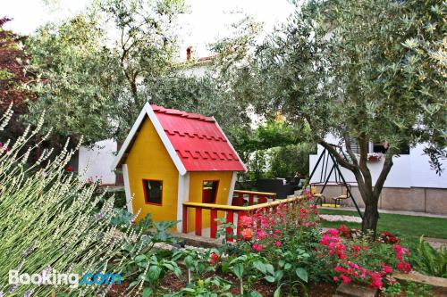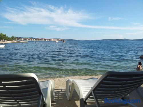 Located in Zadar, this vacation home is in the suburbs, within a 5-minute drive of Narrow Beach and Beach Puntamika. This vacation home is 3.3 mi (5.3 km) from Kolovare Beach and 3.8 mi (6.2 km) from Sea Organ. Make yourself comfortable in this air-conditioned vacation home, featuring a kitchen with a refrigerator and an oven. Conveniences include a coffee/tea maker and a washer/dryer. Distances are displayed to the nearest 0.1 mile and kilometer. Beach Puntamika - 1.7 km / 1.1 mi Narrow Beach - 1.8 km / 1.1 mi Sea Gate - 3.4 km / 2.1 mi Cathedral of St. Anastasia - 3.4 km / 2.1 mi Monastery of St. Francis Assisi - 3.4 km / 2.1 mi Forum - 3.5 km / 2.2 mi St. Donat's Church - 3.5 km / 2.2 mi Greeting to the Sun - 3.5 km / 2.2 mi Sea Organ - 3.5 km / 2.2 mi Port Gate - 3.6 km / 2.2 mi Museum of Ancient Glass - 3.7 km / 2.3 mi Zadar Ethnological Museum - 3.7 km / 2.3 mi People's Square - 3.7 km / 2.3 mi City Sentinel - 3.7 km / 2.3 mi Knight's Palace - 3.8 km / 2.4 mi The nearest major airport is Zadar (ZAD) - 14.4 km / 8.9 mi