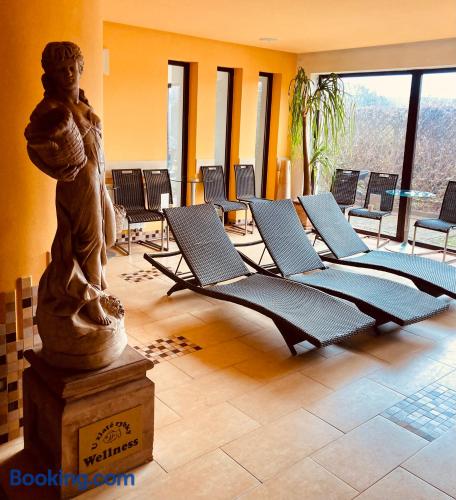 Located in Vyškov, 17 miles from Špilberk Castle, Apartmány, Penzion, Wellness U zlaté rybky provides accommodations with a garden, free private parking and a terrace. The property is around 5 miles from Dinopark Vyskov, 16 miles from Brno Main Station and 17 miles from Villa Tugendhat. Free WiFi is available throughout the property and Trade Fairs Brno is 18 miles away. Guest rooms are equipped with a flat-screen TV with cable channels, fridge, an electric tea pot, a shower, free toiletries and a desk. The hotel has certain units that include a balcony and garden view, and every room is equipped with a private bathroom and a closet. The rooms will provide guests with a microwave. Guests at Apartmány, Penzion, Wellness U zlaté rybky will be able to enjoy activities in and around Vyškov, like hiking and cycling. St. Peter and Paul Cathedral is 17 miles from the accommodation, while Macocha Abyss is 18 miles away. Brno-Turany Airport is 14 miles from the property.