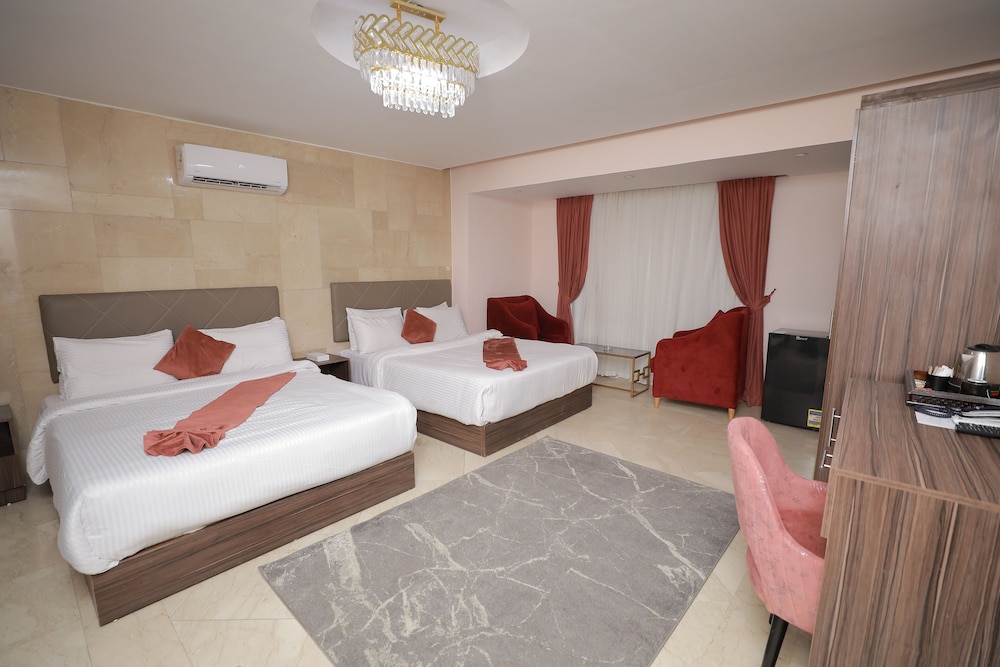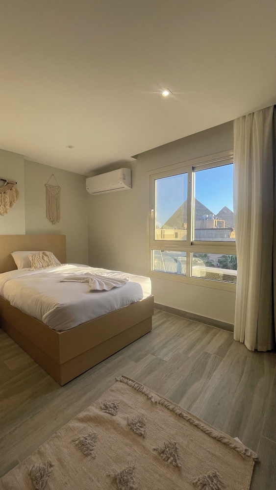 Pyramids Gem Plaza Powered By Look provides flawless service and all the necessary facilities for visitors.Stay connected with your associates, as complimentary Wi-Fi is available during your entire visit.The hotel offers taxi amenities to assist you in discovering your desired offerings in Giza. When arriving by car, take advantage of the hotel's convenient on-site parking facilities.The hotel offers reception amenities including concierge service, luggage storage and safety deposit boxes to ensure a comfortable stay for guests. Whether it's an extended stay or simply needing fresh attire, dry cleaning service and laundry service provided by hotel ensures your cherished travel garments stay spotless and accessible.Your stay will be comfortable with the presence of 24-hour room service, room service and daily housekeeping as an in-room amenity for your relaxation and enjoyment.To ensure the well-being and convenience of all visitors, smoking is strictly prohibited throughout the entire hotel.Smoking is permitted solely in the specified smoking zones allocated by hotel. In order to ensure the utmost level of relaxation, the guestrooms feature an inviting design and are equipped with all basic necessities, creating a delightful stay experience. To ensure a pleasant stay, a selection of rooms at hotel come furnished with blackout curtains and air conditioning, all designed with your ease in mind.Several chosen accommodations at Pyramids Gem Plaza Powered By Look have a separate living room incorporated into the room design.Selected rooms offer in-room amusement like cable TV as a source of entertainment for guests to enjoy. Within specific rooms, a refrigerator and a coffee or tea maker is conveniently available for your use. Understanding the significance of bathroom facilities in enhancing visitor contentment, hotel offers toiletries and towels within a few chosen chambers. Start your day stress-free at Pyramids Gem Plaza Powered By Look as breakfast is made available for you on the premises. How about kicking off each day of your getaway with a delicious cup of coffee? At the hotel, relish in the invigorating taste of a freshly brewed, excellent coffee.Visitors with specific dietary preferences can savor a variety of culinary styles at Pyramids Gem Plaza Powered By Look, featuring halal choices to accommodate their needs.