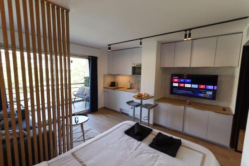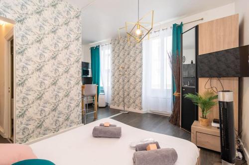Located in Cannes (Carnot), this apartment is within a 15-minute walk of Promenade de la Croisette and Palace of Festivals and Conferences. This apartment is 0.6 mi (1 km) from Cannes Harbour and 10.9 mi (17.6 km) from Marineland Antibes.