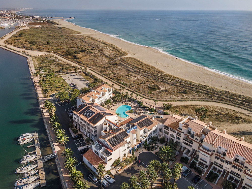 Résidence Pierre & Vacances Les Bulles de Mer provides beachfront accommodations in Saint-Cyprien. A few steps from Plage de la Lagune and a 7-minute walk from Plage Sud, the property features a garden and a bar. There's a seasonal outdoor pool and guests can make use of free Wifi, free private parking, and an electric vehicle charging station. Offering a terrace or balcony with views of the sea and lake, the units feature air conditioning, a seating area, satellite flat-screen TV, and kitchenette. A dishwasher, a microwave, and toaster are also available, as well as a coffee machine and a kettle. At the condo hotel, each unit has bed linen and towels. Guests are welcome to eat at the on-site traditional restaurant, which is open for dinner, lunch, cocktails, and high tea. The condo hotel offers a variety of wellness options, including a spa facilities, a wellness packages, and yoga classes. If you'd like to discover the area, fishing and walking tours are possible in the surrounding area, and the condo hotel can arrange a bicycle rental service. Plage du Pont Tournant is a 9-minute walk from Résidence Pierre & Vacances Les Bulles de Mer, while Collioure Royal Castle is 9.3 miles from the property. Perpignan - Rivesaltes Airport is 21 miles away.