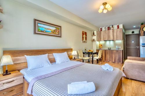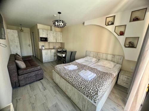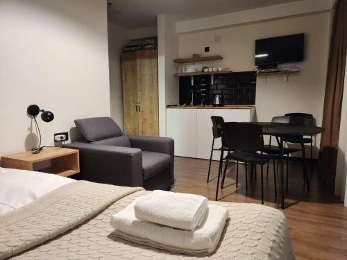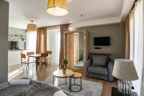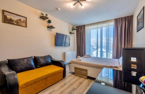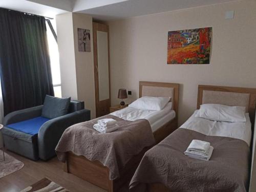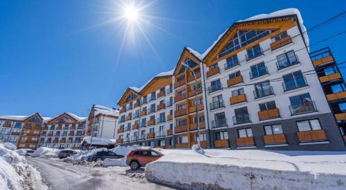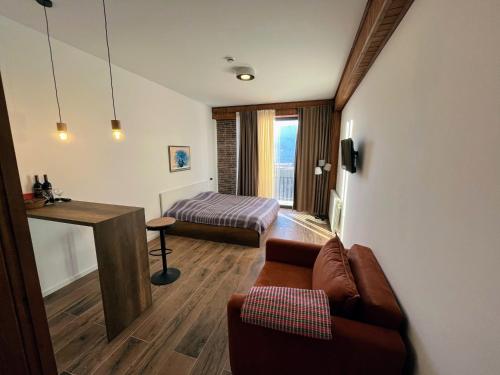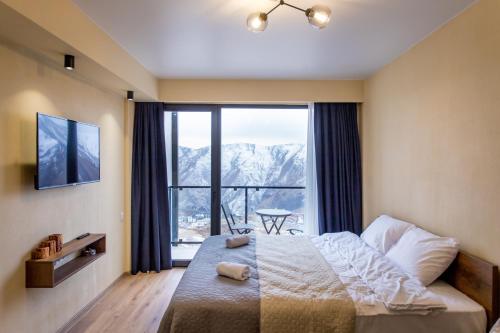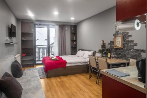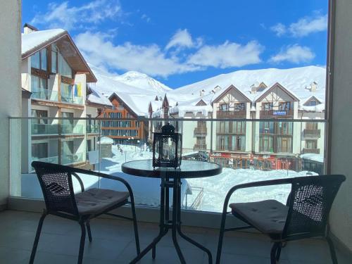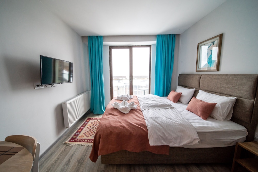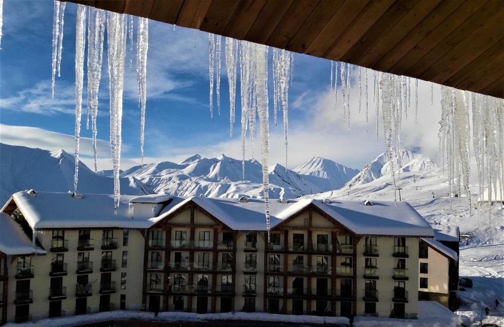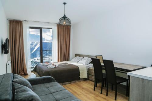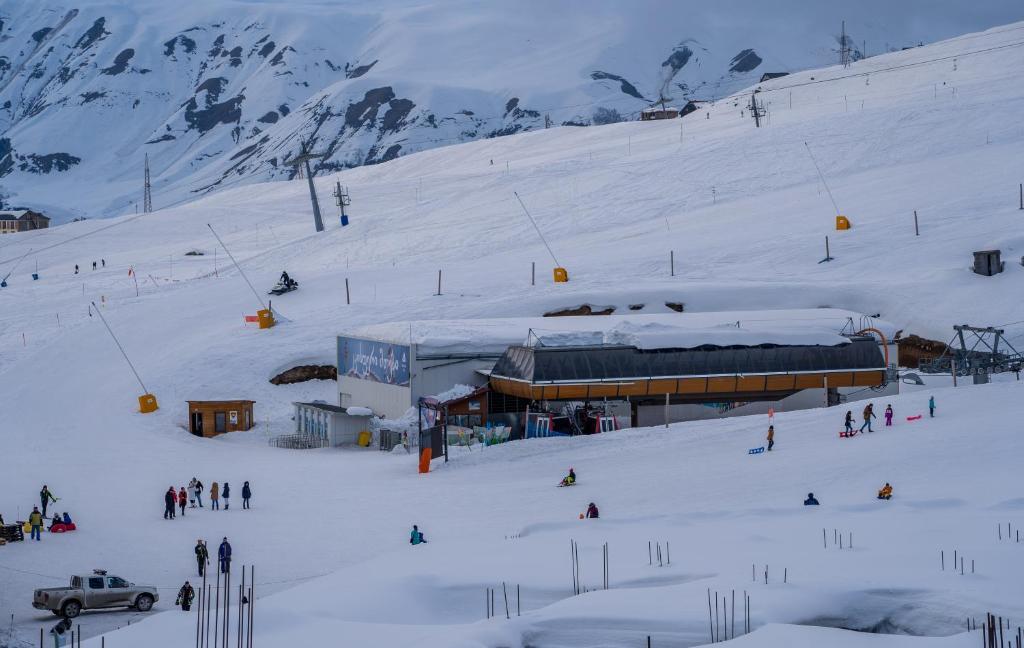 Offering a casino, GVC 315 Atrium New Gudauri offers accommodations in Gudauri. Free Wifi is available throughout the property and private parking is available on site. The accommodation features a 24-hour front desk, an elevator, and currency exchange for guests. Offering direct access to a balcony with city views, the air-conditioned apartment consists of 1 bedroom. Featuring a terrace with mountain views, this apartment also includes a flat-screen TV, a well-equipped kitchen with a microwave, a toaster, and a fridge, as well as 1 bathroom with a walk-in shower and a hair dryer. This apartment is allergy-free and non-smoking. The breakfast offers buffet, à la carte, or continental options. Guests are welcome to eat at the on-site family-friendly restaurant, which is open for dinner, lunch, brunch, and cocktails. Bike rental and car rental are available at this apartment, and the area is popular for hiking. Skiing and cycling can be enjoyed nearby, while a ski equipment rental service, ski-to-door access and a ski pass sales point, are also available on-site.