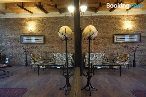 Best Host in Sighnaghi provides accommodations with a garden, barbecue facilities, and a shared lounge. This property offers access to a balcony, free private parking, and free Wifi. The guest house features garden views, a picnic area, and a 24-hour front desk. The units at the guest house feature private entrance and soundproofing so guests can enjoy a peaceful stay. Accommodation includes a terrace with mountain views, a fully equipped kitchenette, an outdoor dining area, and a private bathroom with bath. At the guest house, every unit is fitted with bed linen and towels. Continental and Asian breakfast options with warm dishes, local specialities, and fresh pastries are available. Sightseeing tours are available within easy reach. Bodbe Monastery is 1.9 miles from the guest house, while Sighnaghi National Museum is a 8-minute walk away. Tbilisi International Airport is 61 miles from the property, and the property offers a paid airport shuttle service.