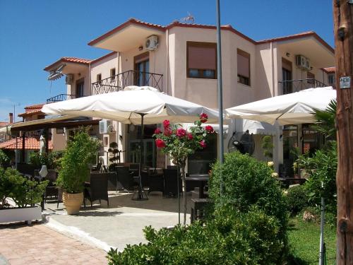 The apartment hotel is situated in Sithonia, in the area of Trikorfo Gerakini. The location allows guests easy access to all the important places in Halkidiki. The sandy beach of Trikorfo is 200 m away. Guests will find shops, restaurants and bars in Gerakini town centre, which is just a 5-minute walk from the beach hotel. Nikiti and its nightlife is 20 km from the hotel, the tourist centre of Metamorfosi is approximately 10 km, Moudani is around 15 km and Petralona is roughly 40 km.