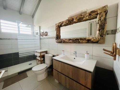 Studio agréable à Capesterre-de-Marie-Galante 25 m² vue mer is located in Beauséjour, just a few steps from Capesterre-de-Marie-Galante Beach and a 11-minute walk from La Feuillère Beach. This property offers access to a balcony, free private parking, and free Wifi. This air-conditioned apartment comes with a seating area, a fully equipped kitchen with a microwave, and a TV. The accommodation is non-smoking. Plages des Galets is 1.7 miles from the apartment.