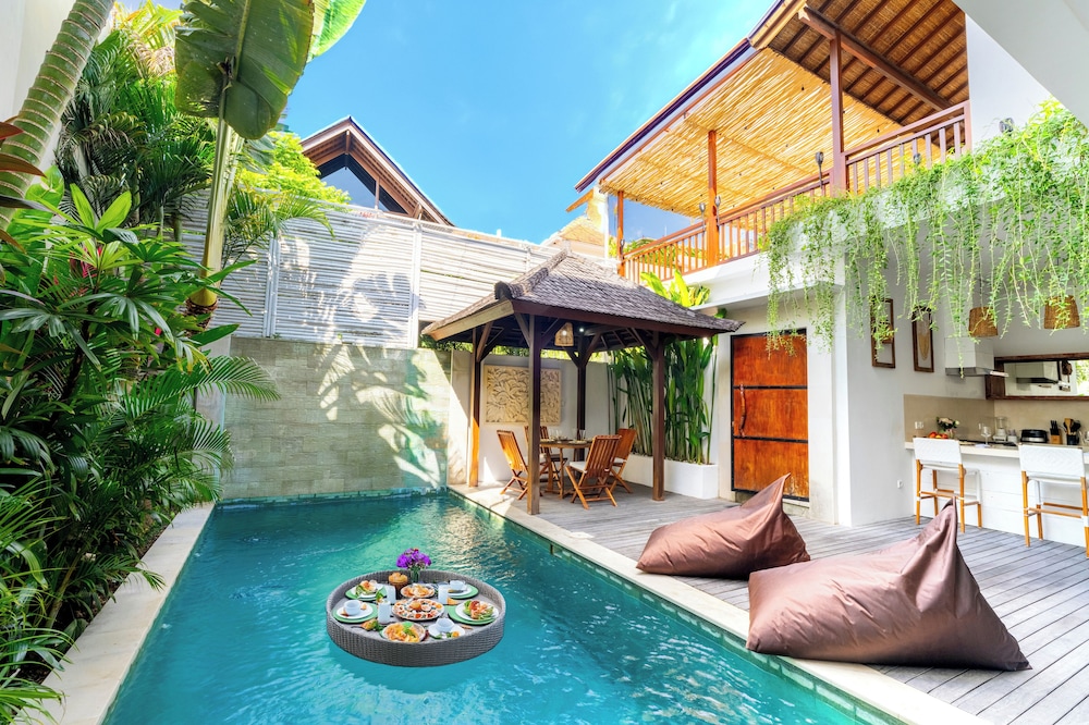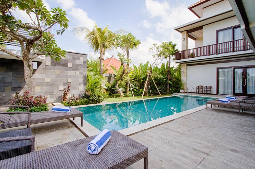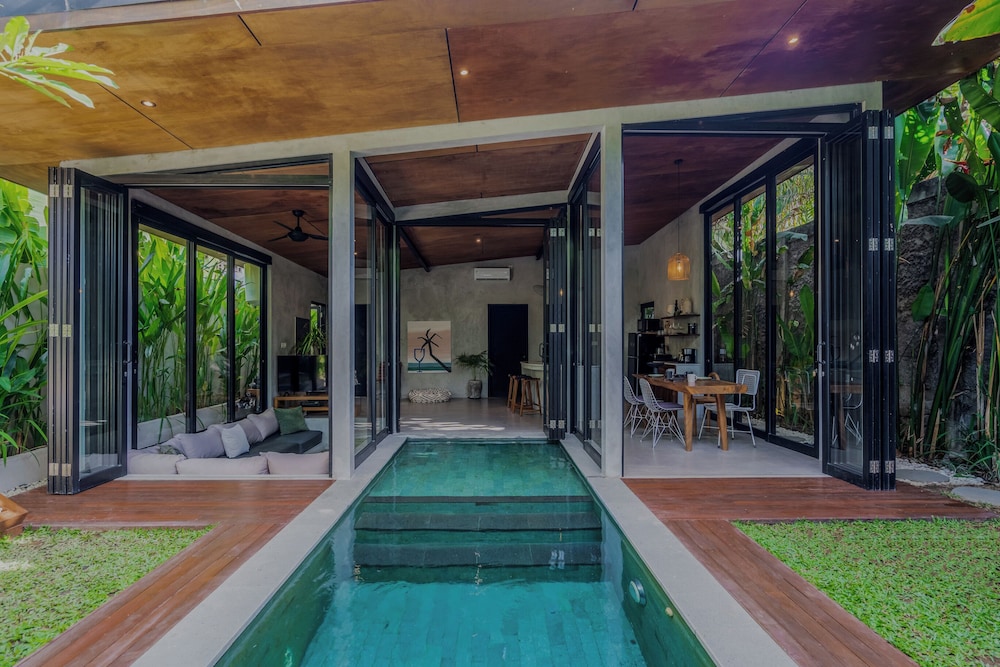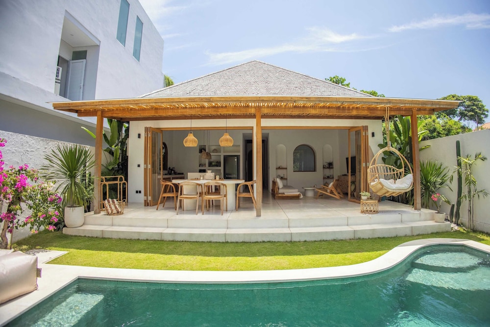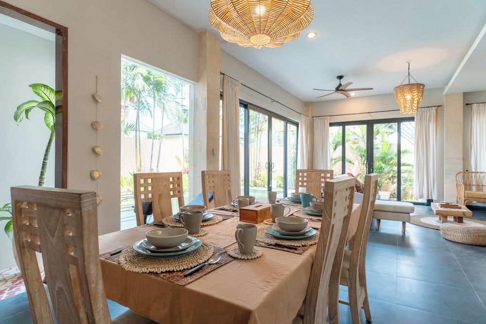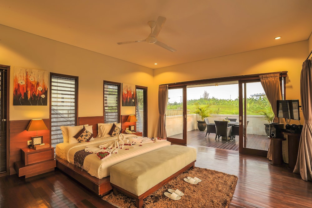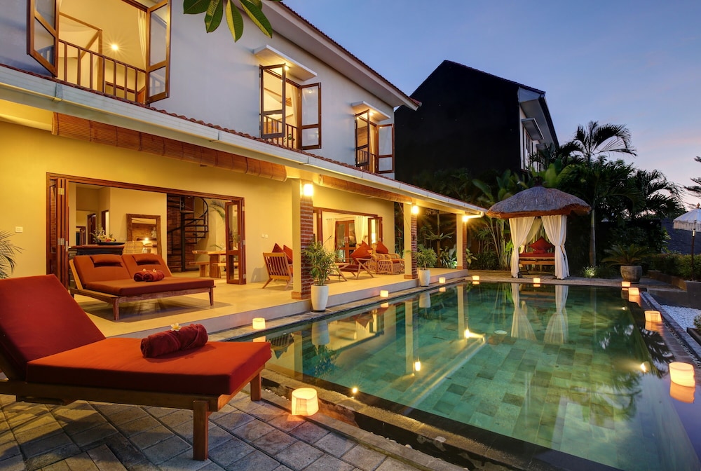 The villa is located in the semi-rural village of Canggu just minutes from the popular surfing beach of Batu Bolong. For social interaction, the Canggu Club is a nearby leisure centre with high-end sporting facilities, a restaurant, a pub and activities to occupy children. Echo Beach is also just a short car ride away for an evening of great food and entertainment. The vibrant lifestyle district of Seminyak satisfies all shopping, wining and dining desires.Enveloped by productive rice terraces in the village of Canggu, the air-conditioned beach hotel is a sprawling complex that features five Balinese-styled holiday retreats. Each one has been designed to harmonise with the surrounding environment, whereby guests can unwind and reconnect with nature. Renovated in 2011, the hotel offers a hotel safe, a dining room and a car park.All rooms are en suite and feature a shower, bath and hairdryer, as well as a king-size bed, satellite/cable TV, a VCR/DVD player and Internet access. Additional amenities include a safe, a kitchenette with a fridge and a microwave, and a work desk. Further features include individually regulated air conditioning and a balcony or terrace.The hotel has an outdoor swimming pool with sun loungers by the water's edge, and also offers massage treatments. The nearby beach is sandy.Guests can enjoy a continental breakfast each morning. Lunch and dinner can be enjoyed à la carte or selected from a set menu.