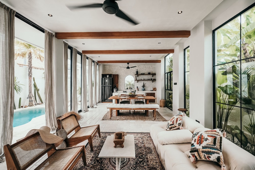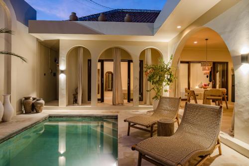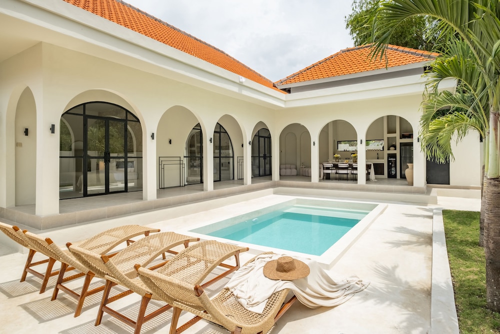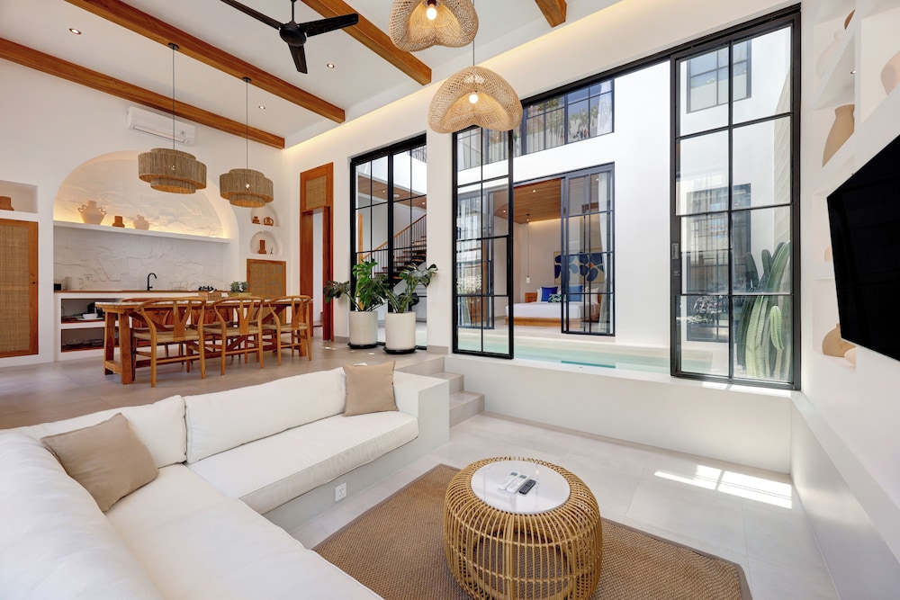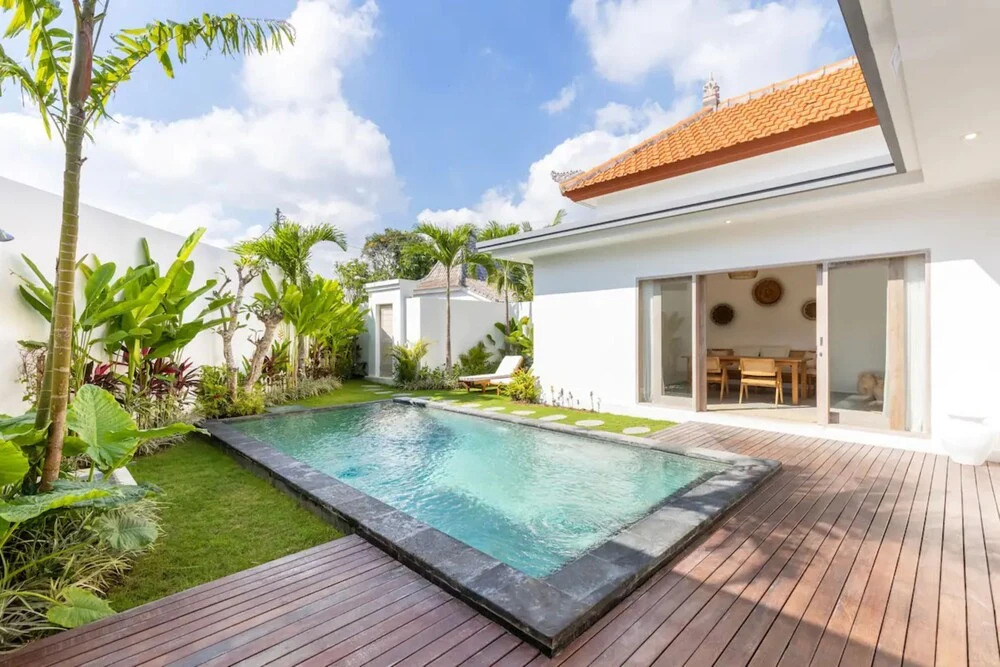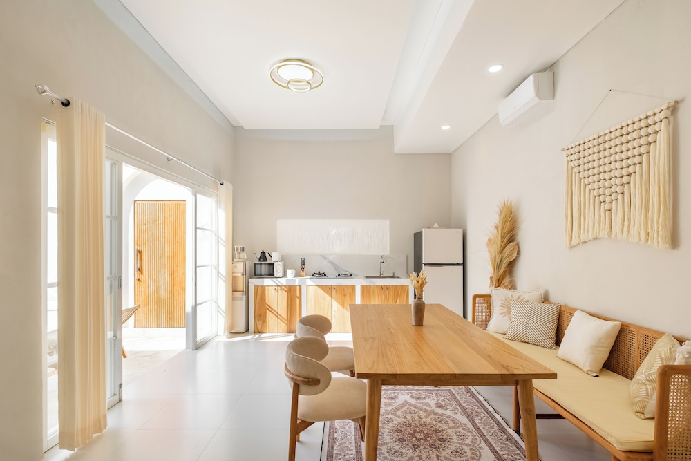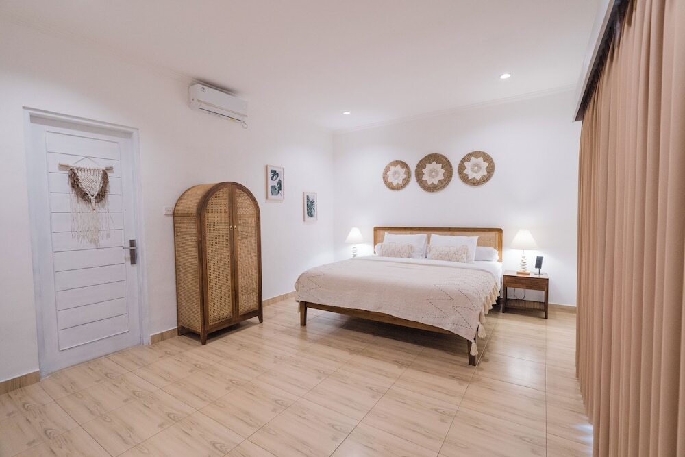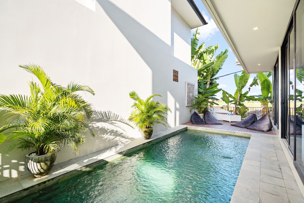 The villa is located in the semi-rural village of Canggu just minutes from the popular surfing beach of Batu Bolong. For social interaction, the Canggu Club is a nearby leisure centre with high-end sporting facilities, a restaurant, a pub and activities to occupy children. Echo Beach is also just a short car ride away for an evening of great food and entertainment. The vibrant lifestyle district of Seminyak satisfies all shopping, wining and dining desires.Enveloped by productive rice terraces in the village of Canggu, the air-conditioned beach hotel is a sprawling complex that features five Balinese-styled holiday retreats. Each one has been designed to harmonise with the surrounding environment, whereby guests can unwind and reconnect with nature. Renovated in 2011, the hotel offers a hotel safe, a dining room and a car park.All rooms are en suite and feature a shower, bath and hairdryer, as well as a king-size bed, satellite/cable TV, a VCR/DVD player and Internet access. Additional amenities include a safe, a kitchenette with a fridge and a microwave, and a work desk. Further features include individually regulated air conditioning and a balcony or terrace.The hotel has an outdoor swimming pool with sun loungers by the water's edge, and also offers massage treatments. The nearby beach is sandy.Guests can enjoy a continental breakfast each morning. Lunch and dinner can be enjoyed à la carte or selected from a set menu.