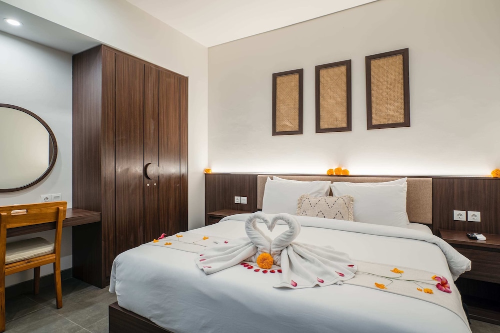 The hotel is located next to the Botanical Garden and 2.5 km (10 minutes' drive) from Centre Ubud.The villa is placed in a quiet area which is surrounding by the rice fields, perfectly situated for a honeymoon couples. This cozy villa has a wonderful contemporary design offering an intimate retreat experience, romance, rejuvenation and exotic sensuality.The villa air-conditioned bedrooms come with an antique bed offering guests their own space to relax with the Tatami Japanese style completed with LCD TV, and mini home theatre with bathrooms feature separate bath tub and showers as well as modern simple guest amenities. Semi outdoor dining area with a pool and hill view creates a sensational experience to the couples.The property offers Spa and massage service (fees apply).