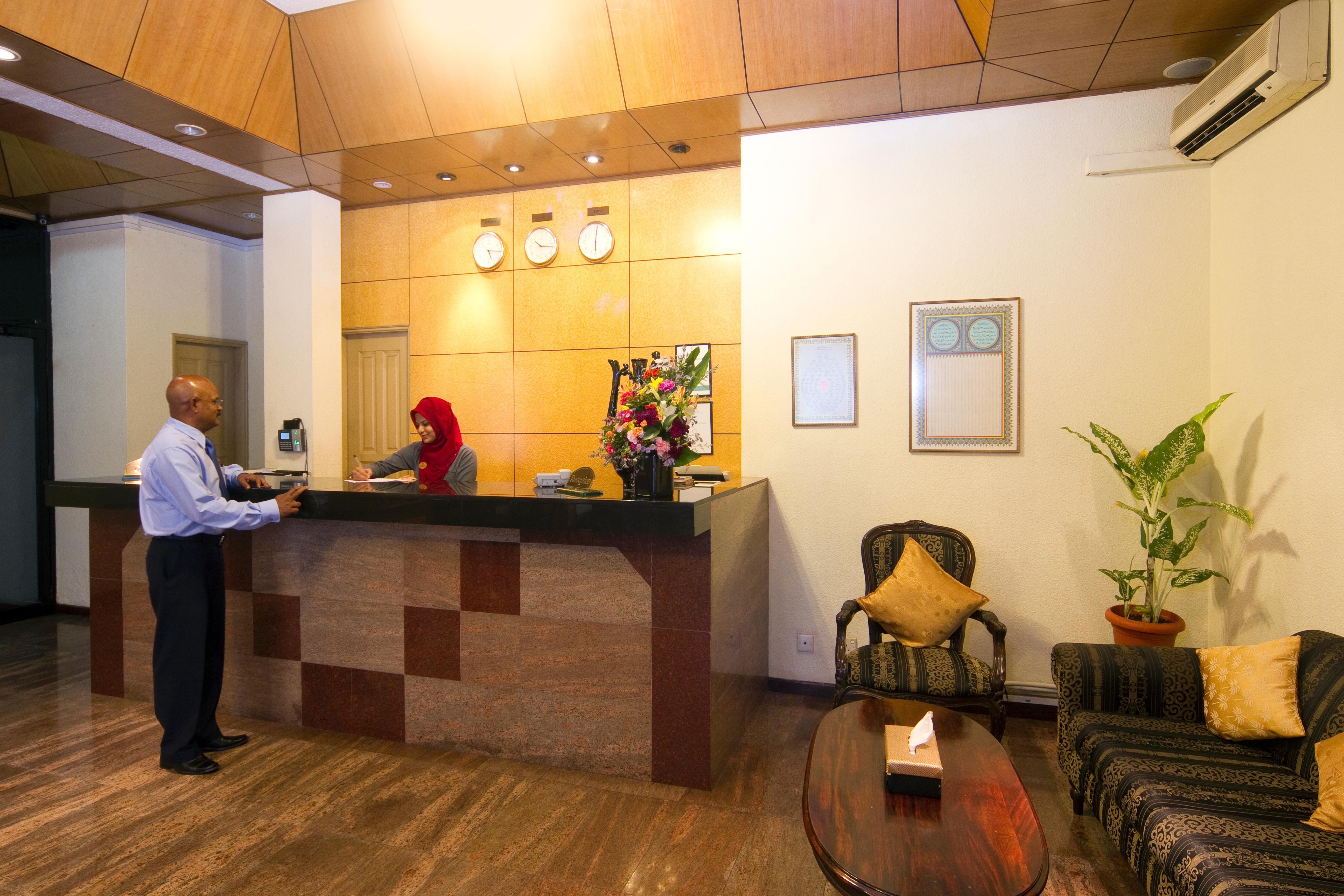 This hotel is located in the main city of Male in the Maldives. It is just 2 minutes' walk from Male's jetty and the shopping centres tourist centre and other main points of interest in the area are also to be reached on foot. It lies 1 km away from the airport.//This air-conditioned city hotel comprises a total of 36 guest rooms offering beautiful sea views. The hotel offers a wide range of facilities which ensure its guests a comfortable stay. In addition to a lobby area with 24-hour reception and check-out services facilities on offer to guests include a hotel safe currency exchange facilities a cloakroom and lift access to the upper floors. Guests can dine at the restaurant and they will appreciate the complimentary wireless Internet access. They can also take advantage of the room and laundry services.//All the rooms come with an en suite bathroom with a shower/bathtub and a hairdryer and offer a king-size or double bed. They are equipped with a direct dial telephone satellite/cable TV Internet access and a safe. Furthermore a minibar tea and coffee making facilities an ironing set individually regulated air conditioning and a balcony or terrace are provided in all accommodation units as standard.//Guests may select their breakfast from a buffet and the midday and evening meals may be enjoyed à la carte or as a set menu.//Guests arriving from the airport can take an advantage of the regular boat service which departs every 15 minutes. The drive to Male City takes 10 minutes and the walk from the jetty to the hotel only 2 minutes.