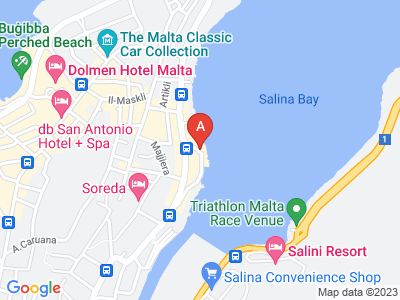 The club resort is centrally located in the northern hub of entertainment in Malta and at a convenient distance of 8 km from the ferries to cross to Malta's sister islands, Gozo and Comino. Within a short walking distance of the resort is a bus stop from where public transport takes visitors directly to Valletta and an ATM facility. The beach is around 50 m from the resort. Qawra, where the resort is located, is just 19 km from the airport and 16 km from the island's capital Valletta.