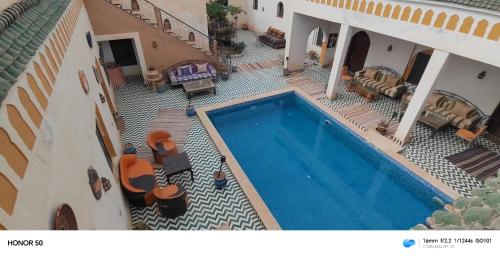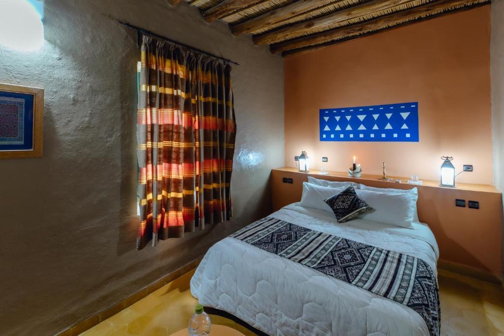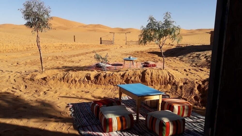 Kasbah Mohayut is in a peaceful setting at the foothills of the high dunes of Merzouga. It is the perfect choice to combine relaxation, authenticity and adventure. The Kasbah offers spacious rooms and suites set around the swimming pool or the patio. Each room combines typical Moroccan features and modern facilities such as air conditioning. For your comfort, the hotel features a restaurant serving typical Berber specialties and terraces from which to admire the starry sky at night. During your stay, discover the magical atmosphere of the desert: the Kasbah has a bivouac in the desert, 2 hours away on dromedary’s back. The hotel offers many day trip opportunities.