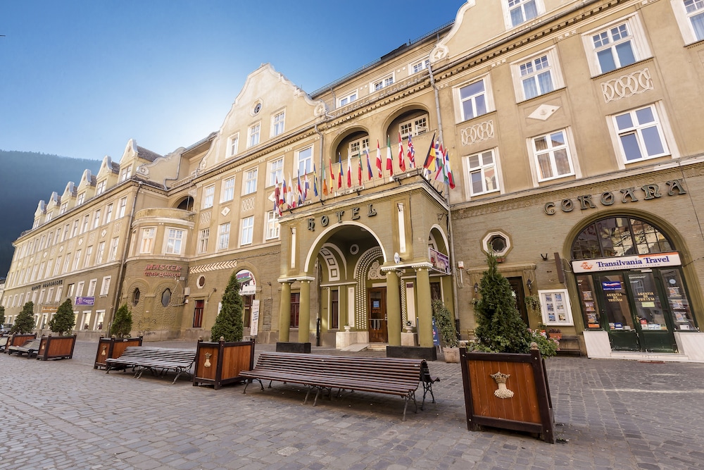 Includes 2-star hotels, standard, mini hotels, residences and rural hotels. (general) The Coroana Hotel is one of the architectural jewels of Brasov, is the oldest hotel in town, the meeting place for personalities of all times. Located on the famous pedestrian street of the city, the Republic Boulevard, close to the line of the gate of the old city, near Piata Sfatului and the Black Church, the hotel attracts by Art Nouveau and Baroque architecture and therefore was declared a historical monument. The architects Schuller and Goldsmidt inspired by muncheneza architecture were proposing a symbolic building that pleased both the aesthetic and the functionality. Housed in a building that dates back to 1780, this hotel counts amongst the oldest Baroque-style guesthouses in the city. There are a total of 76 rooms including 4 suites on offer on the hotel's 3 floors and facilities include a spacious foyer with a currency exchange desk, a restaurant offering Romanian specialities as well as tasty international dishes, an in-house brasserie and a sun terrace on which it is possible to kick back and relax during the summer months. Business travellers may make use of the hotel's conference facilities. Each of the tasteful rooms is ideally fitted to cater for guests' requirements and offers a classical level of service. Each comes with an en suite bathroom, a direct dial telephone, satellite/ cable TV, a minibar and central heating.