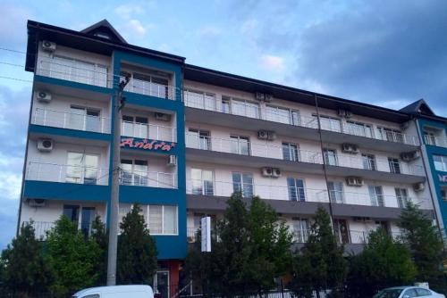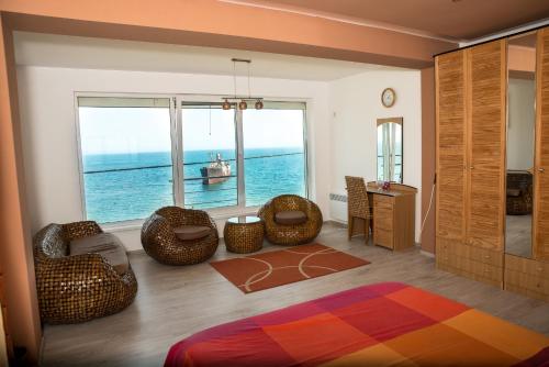 Razvan Holiday provides beachfront accommodations in Costinesti. Among the facilities at this property are a 24-hour front desk and a shared kitchen, along with free Wifi throughout the property. The accommodation offers airport transfers, while a bicycle rental service is also available. The guest house will provide guests with air-conditioned units offering a wardrobe, a safety deposit box, a flat-screen TV, a terrace, and a private bathroom with a shower. The guest house features some units with sea views, and all units include a balcony. At the guest house, every unit is fitted with bed linen and towels. There is a coffee shop, bar, and lounge. The guest house has a picnic area where you can spend the day outdoors. Popular points of interest near the guest house include Costinesti Beach, Costinesti Shipwreck, and Costineşti Amusement Park. Mihail Kogălniceanu International Airport is 34 miles from the property.