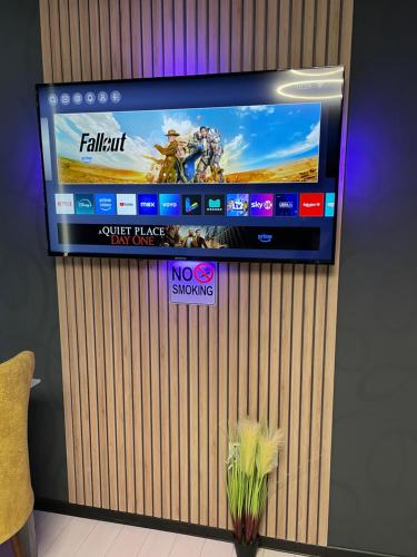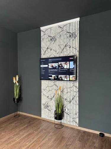 The apartment features 1 bedroom, a living room with a flat-screen TV, an equipped kitchen, and 1 bathroom with a bath and a shower. The accommodation is soundproof.