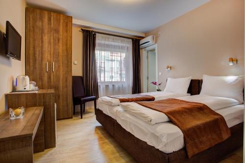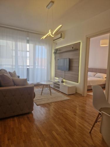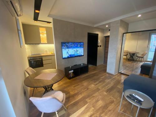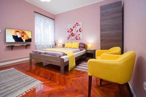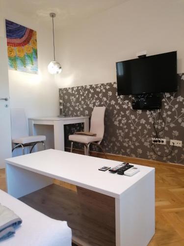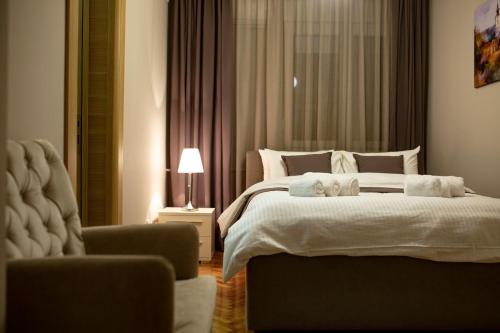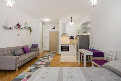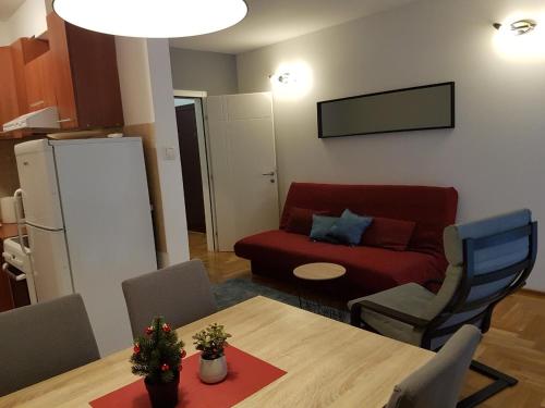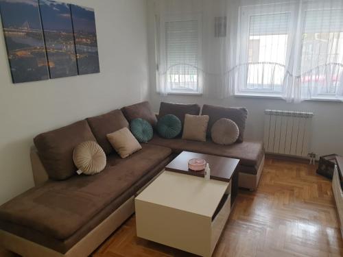 Angelina apartmani. Enjoys a location in Vračar (historical) 3.1 miles from Belgrade Train Station and 3.4 miles from Belgrade Fair. This recently renovated apartment is located 1.2 miles from St. Sava Temple and 1.9 miles from Republic Square Belgrade. The accommodation offers a fitness room free Wifi throughout the property and family rooms. At the apartment complex the units come with air conditioning a seating area a flat-screen TV with cable channels a kitchen a dining area a safety deposit box and a private bathroom with a shower bathrobes and slippers. A fridge a stovetop and kitchenware are also featured as well as a coffee machine and a kettle. At the apartment complex every unit includes bed linen and towels. A mini-market is available at the apartment. If you'd like to discover the area cycling is possible in the surrounding area and the apartment can arrange a bicycle rental service. Belgrade Arena is 4.1 miles from Angelina apartmani. while Ada Ciganlija is 4.8 miles away. The nearest airport is Belgrade Nikola Tesla 9.3 miles from the accommodation and the property offers a paid airport shuttle service.