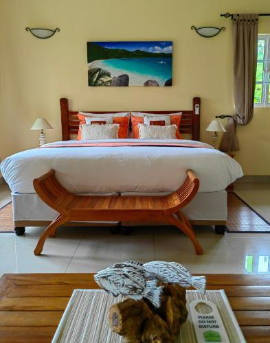Offering a bar and mountain view La Diguoise is set in La Digue 400 metres from Anse La Reunion Beach and 800 metres from Anse Source d'Argent. There is an in-house restaurant plus free private parking and free WiFi are available. Boasting family rooms this property also provides guests with a terrace. Complete with a private bathroom fitted with a shower all units at the guest house have a TV and air conditioning and some rooms also offer a seating area. At the guest house the units have bed linen and towels. A continental breakfast is available every morning at the guest house. Guests can swim in the outdoor swimming pool relax in the garden or go snorkelling or cycling. Anse Severe Beach is 2.3 km from La Diguoise while Notre Dame de L’Assomption Church is 500 metres from the property.