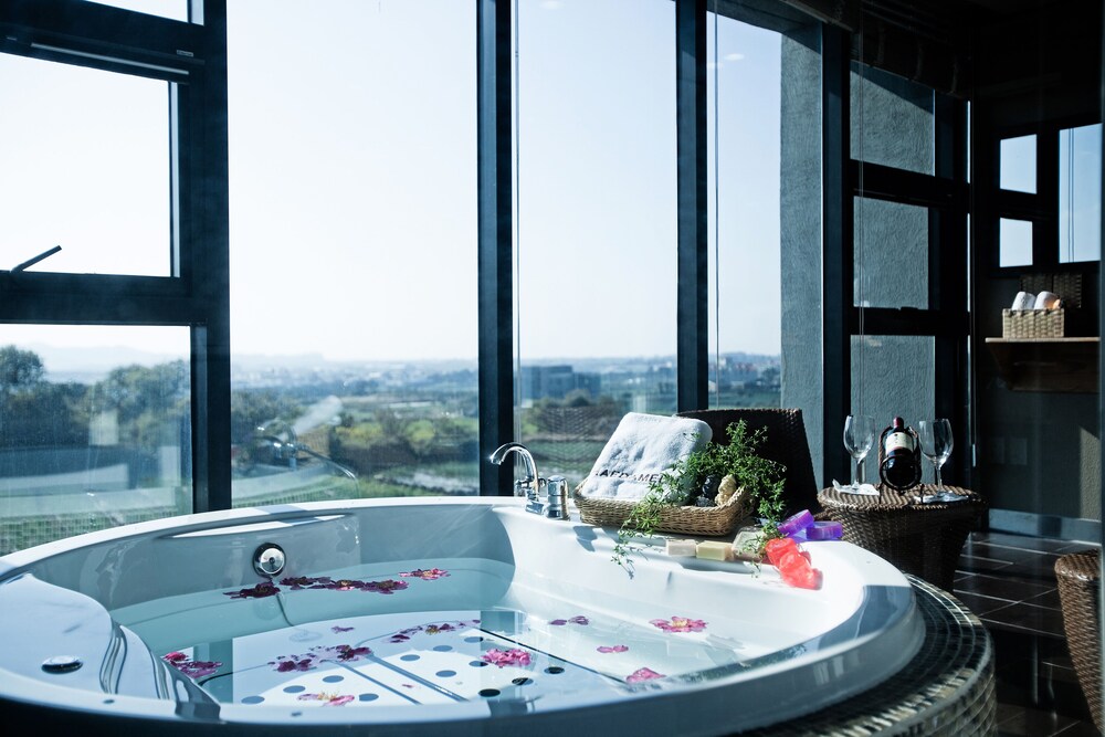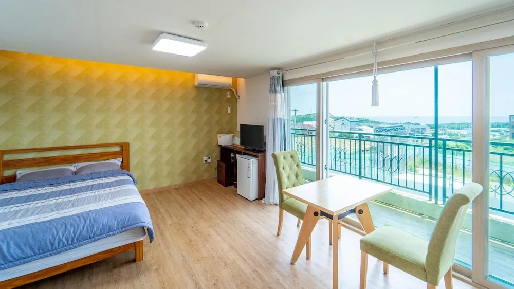 Providing quiet street views, Wind Jeju Cafe & Pension in Seogwipo provides accommodations and a garden. Featuring mountain and garden views, this vacation home also provides guests with free Wifi. There's a restaurant serving Korean cuisine, free private parking, and an electric vehicle charging station. Featuring a terrace, the units offer air conditioning and have a flat-screen TV and a private bathroom with shower and slippers. All rooms include a kettle, while some rooms here will provide you with a fully equipped kitchen with a microwave and kitchenware. At the vacation home, all units include a seating area. A car rental service is available at the vacation home. Sagye Beach is 1.3 miles from Wind Jeju Cafe & Pension, while Osulloc Tea Museum is 5.4 miles away. Jeju International Airport is 24 miles from the property.