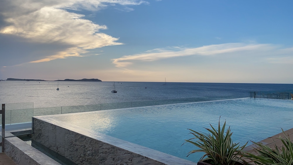 Amàre Beach Hotel Ibiza Adults Recommended in San Antonio Bay, in Bou Cove's waterfront, features 3 seasonal outdoor swimming pools as well as direct access to a pier. Free WiFi is offered throughout the property. All air-conditioned rooms come with a balcony, desk and flat-screen TV with satellite channels. Some rooms offer access to an exclusive lounge. Other facilities at the hotel include the Amàre Club, which features 3 different areas offering music, food, and entertainment by the sea. There is also a rooftop terrace with a bar, and the Hayaca Restaurant whose chef has a Michelin star. The wellness area offers beauty treatments and the gym has sea views. Luggage storage is offered and the hotel has a 24-hour reception, a tour desk and room service for guests. Online check-in is also offered to all guests. You can hire a car or bicycle. Kumharas cocktail bar can be found nearby. San Antonio nightlife is just 2.5 mi away. The nearest airport is Ibiza Airport, 8.1 mi from the property.