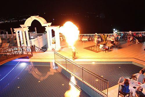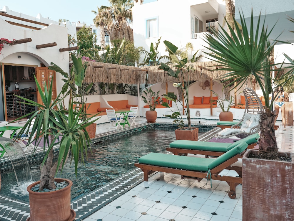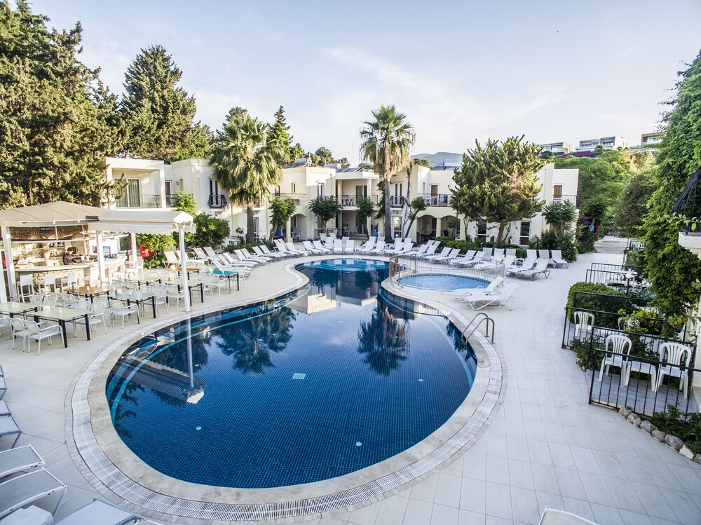 This hill-top hotel is located 500 metres from Bitez Beach and features spacious rooms with air conditioning and a balcony. It has a courtyard with a swimming pool and thatched umbrellas.Including free Wi-Fi, all rooms at Delfin Hotel come with a satellite TV, a minibar and private bathroom. All rooms have tiled floors and elegantly draped, yellow curtains.Turkish and Mediterranean cuisine is served in the restaurant. It is also possible to eat on the poolside terrace or to have an evening BBQ. There is a bar for cocktails and juices.The games room is available for guests to play billiards and darts. Alternatively, guests can rent a hotel bike or a car from the 24-hour reception.The hotel is situated a 15-minute walk from Gümbet’s popular clubs and taverns. An airport shuttle is available to Milas Airport, 35 km away.