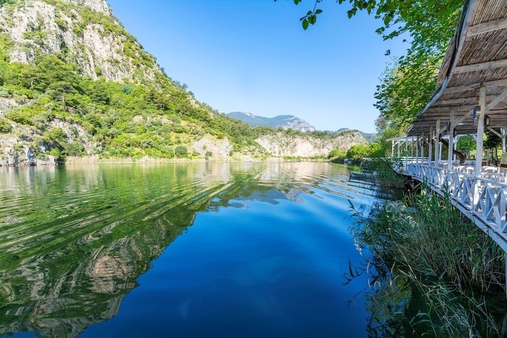 Offering pool views, Osmanli Hani Apart Hotel in Dalyan provides accommodations, a seasonal outdoor swimming pool, a garden, a bar, and a shared lounge. This apartment offers air-conditioned accommodations with a terrace and free Wifi. The rooms come with a balcony with mountain views. All units comprise a seating area with a sofa, a dining area, and a fully equipped kitchen with various cooking facilities, including a toaster, a fridge, a stovetop, and kitchenware. There's a fully equipped private bathroom with shower and a hair dryer. Guests at the apartment can enjoy a buffet breakfast, and breakfast in the room is also available. There is a snack bar, and a grocery delivery service and packed lunches are also available upon request. You can play darts at Osmanli Hani Apart Hotel, and bike rental and car rental are available. If you'd like to discover the area, cycling is possible in the surrounding area. Sulungur Lake is 3.8 miles from the accommodation, while Dalaman River is 15 miles from the property. Dalaman Airport is 18 miles away, and the property offers a paid airport shuttle service.