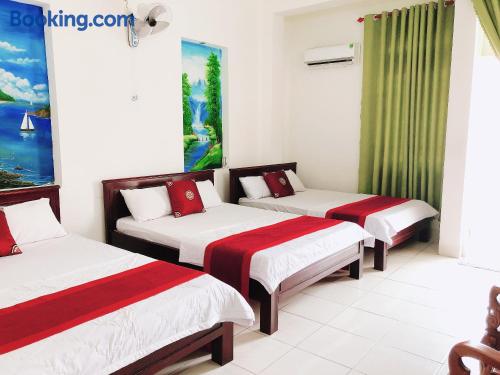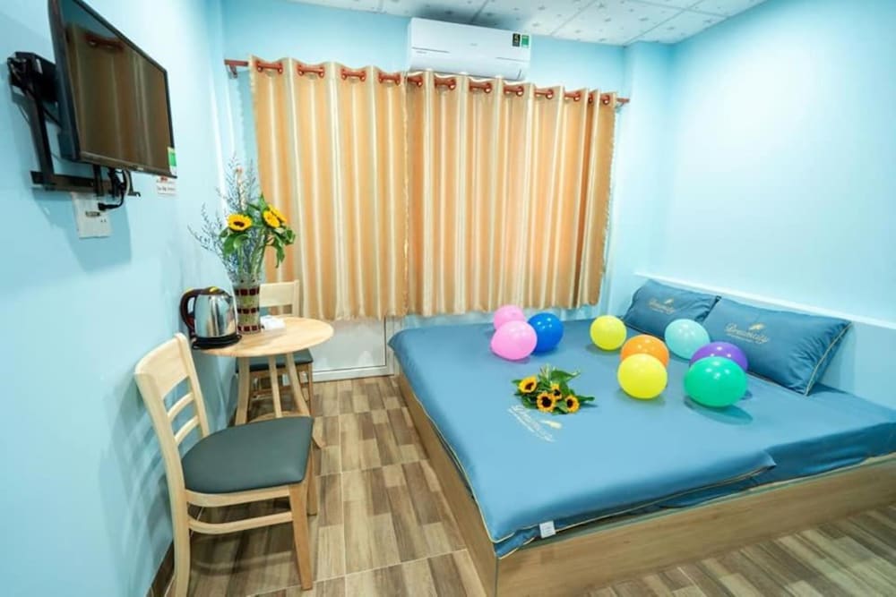 Located in Vung Tau, within a 2-minute walk of Back Beach and 1.1 miles of Pineapple Beach, Thai Quang Hotel provides accommodations with a shared lounge and free WiFi throughout the property as well as free private parking for guests who drive. This 2-star hotel offers a shared kitchen and room service. The hotel features family rooms. The hotel will provide guests with air-conditioned rooms offering a desk, an electric tea pot, a fridge, a safety deposit box, a flat-screen TV, a terrace and a private bathroom with a bidet. Thai Quang Hotel has certain units with city views, and every room comes with a balcony. All guest rooms include a closet. Speaking English and Vietnamese, staff are always on hand to help at the reception. Front Beach is 1.6 miles from the accommodation, while Nghinh Phong Cape is a 19-minute walk away.