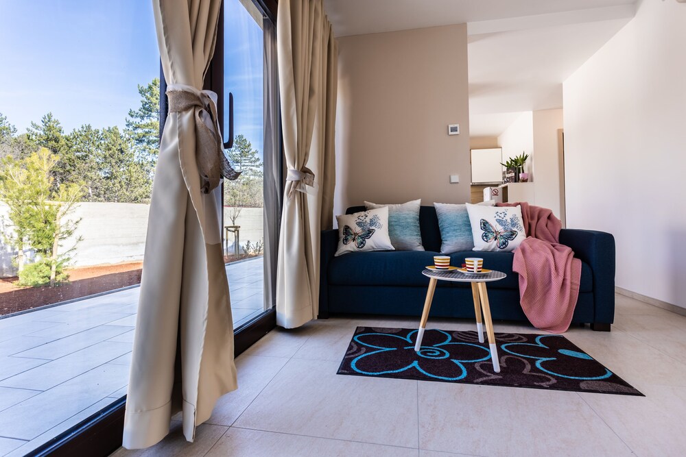 VSG Resort offers a sauna and free private parking, and is within a 2-minute walk of Dionis Beach and 300 yards of Ladinka Beach. With a seasonal outdoor swimming pool, the 5-star apartment has air-conditioned rooms with free Wifi. The apartment has a sun terrace and a hot tub. The units provide views of the garden and come with a seating area, a washing machine, a fully equipped kitchen with a dishwasher, and a private bathroom with a hair dryer. A microwave, a fridge, and kitchenware are also featured, as well as a kettle. At the apartment complex, each unit comes with bed linen and towels. There is a garden with a barbecue at this property, and guests can go hiking nearby. Punta Beach is a 15-minute walk from the apartment, while Punat Marina is 13 miles away. Rijeka Airport is 9.3 miles from the property.