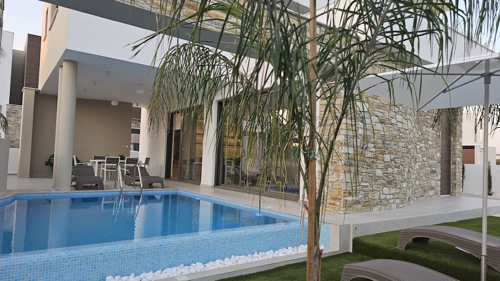 Tourist Class Modern Hotel. (exterior) This is a modern building. (lobby) This accommodation has a small lobby. (general) The Fedrania Gardens has been completely renovated during 2015. It is a modern property, ideal for your holidays in Ayia Napa. The hotel has an outdoor pool, and all rooms are decorated in earth tones.