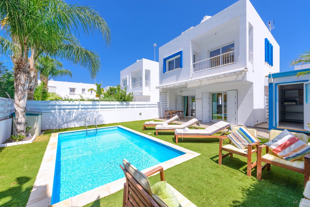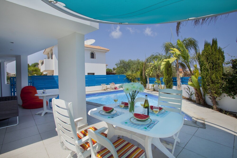 Just a 9-minute walk from Mimosa Beach and 0.7 miles from Green Bay Beach Anthorina 21 features accommodations in Protaras with a garden. This property offers a private pool free Wifi and free private parking. Outdoor seating is also available at the villa. Providing a terrace and pool views the spacious villa includes 3 bedrooms a living room satellite flat-screen TV an equipped kitchen and 2 bathrooms with a bidet and a bath. Towels and bed linen are provided in the villa. For added privacy the accommodation has a private entrance and is protected by full-day security. During warmer months you can make use of the barbecue facilities and eat on the private patio. A car rental service is available at Anthorina 21. Konnos Beach is a 14-minute walk from the accommodation while Kavo Gkreko National Forest Park is 1.6 miles away. The nearest airport is Larnaca International Airport 36 miles from Anthorina 21.
