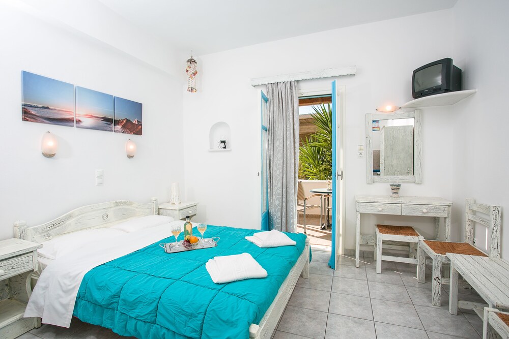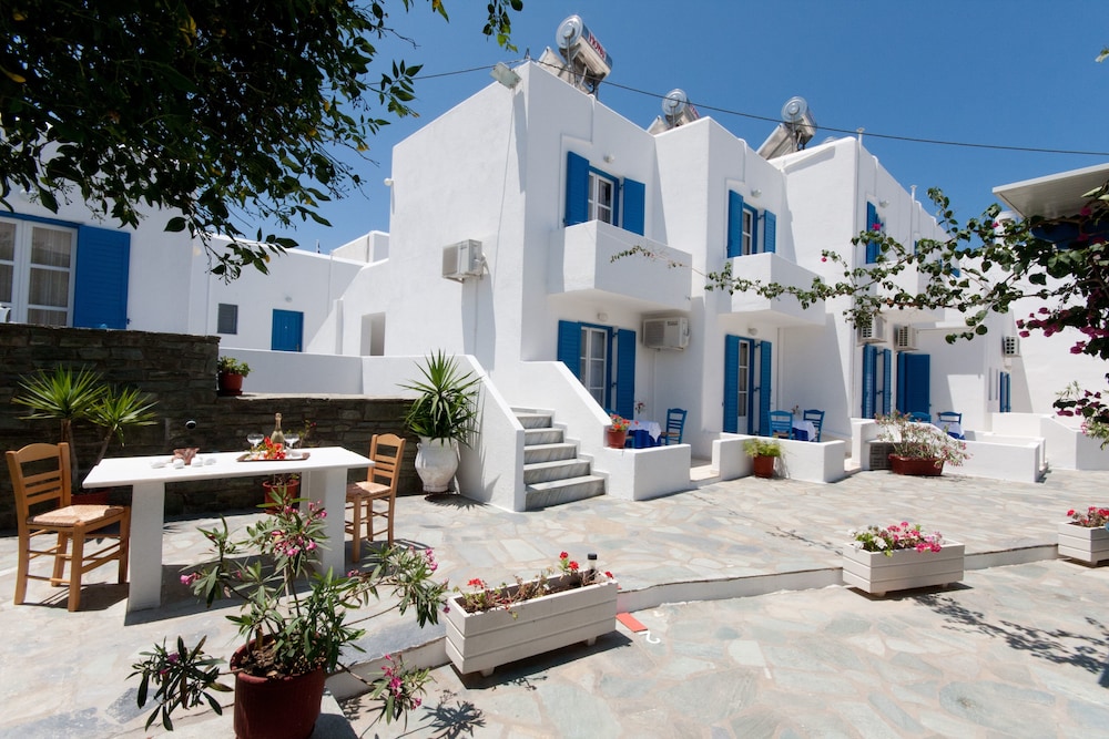 Hotel is just 10 meters from the beach, right in the middle of Parikia.Enjoy the beautiful garden full of wonderful flowers overlooking the blue waters of Paros beach.All rooms are equipped with refrigerator, air conditioning, telephone.