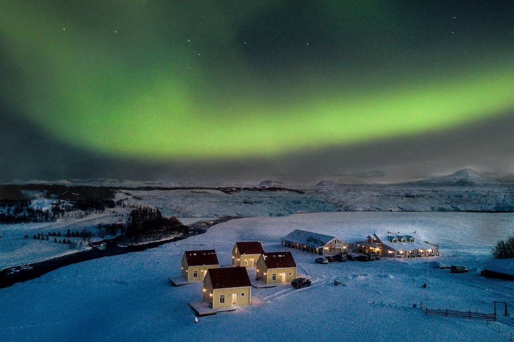 The family-owned Hótel Lækur is set on an Icelandic horse farm, between the Golden Circle and the south coast. Hella is 10 minutes’ drive away. It offers a sun terrace and a guest lounge. The bright, modern rooms feature wooden floors and private bathrooms. Some include either a terrace or balcony. The surrounding views take in the Hekla and Eyjafjallajökull volcanoes. A simple à la carte menu is available in Lækur Hótel’s summer restaurant. Meals during the winter can be ordered in advance. Guests may be lucky enough to experience the Northern Lights during their stay. Seljalandsfoss Waterfall is within 25 minutes’ drive, while Skógafoss Waterfall is a further 20 minutes away. Reykjavík is 62 mi from Hótel Lækur.