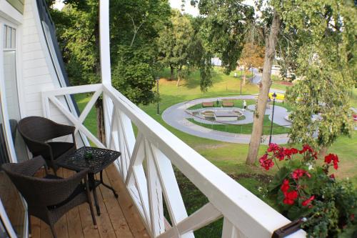 Medical SPA “Eglės Sanatorija” comfort Birštonas is a residential complex and treatment center set in a pine forest on the banks of Nemunas river. The health resort specializes in treating a series of illnesses, including neurological, cardiological, pulmonological, traumatological-orthopedic, endocrinal, gynecological, dermotological, renal, as well as illnesses connected to the movement-support apparatus and the digestive system. There is a treatment center, where guests can receive kinesiotheraphy, physiotherapy, audio-visual therapy treatments and variety of massages. There is swimming pool and sauna complex. Whirl baths, underwater massages and mud applications are also available. All rooms are equipped with fridges, electric kettles and cable TVs. The private bathrooms include bathrobes and hairdryers. Free WiFi is featured throughout the property. Buffet style meals are served three times a day. Guests can choose from a variety of traditional Lithuanian dishes, fresh fruits and vegetables, deserts and meals that are suited for different diets. Hot and cold drinks are also available. Other facilities offered at Medical SPA “Eglės Sanatorija” comfort Birštonas include shared lounge and a children's playground. The property offers free parking. Kaunas airport is 25 mi from the health resort, while Vilnius International airport is 50 mi away.