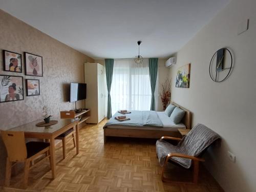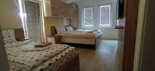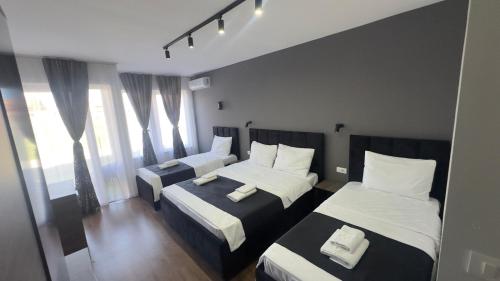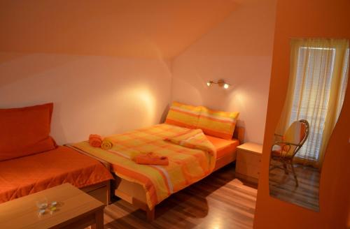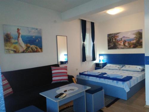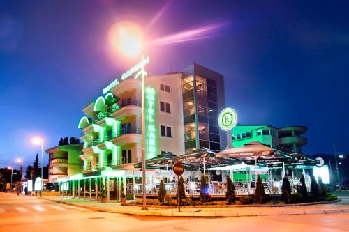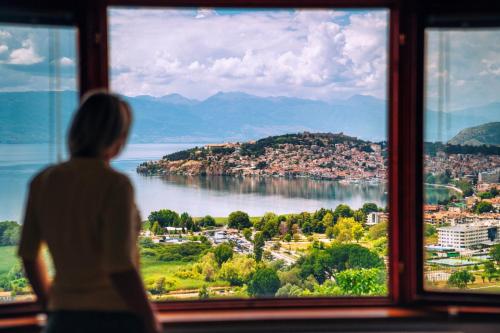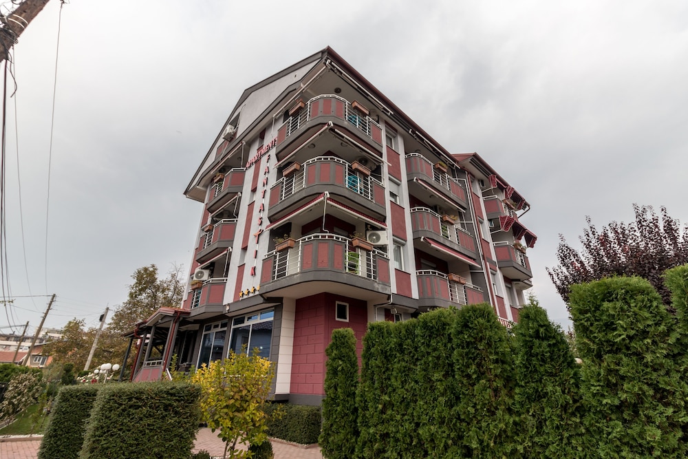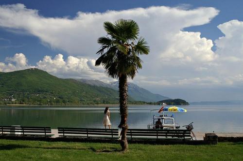 Located 800 m from the centre of the ancient and historical city of Ohrid and 150 m from the shores of Ohrid Lake this hotel is close to the famous Biljana Springs is the ideal base for a visit to this UNESCO World Heritage Site in Macedonia. Guests can visit the beautiful beaches in just 10 minutes' walk from the hotel and enjoy the marvellous view of the lake and old part of the city. Ohrid Airport is approximately 12 km from the hotel.//This modern hotel is perfect for business trips. There is a café and the hotel's restaurant offers a menu of traditional Macedonian cuisine accompanied by violin music in the background. There is a conference hall and wireless Internet access is available. Guests are welcomed to the air-conditioned city hotel in the lobby which offers a 24-hour reception and a 24-hour check-out service as well as lift access to the upper floors. Guests can also take advantage of the bicycle hire room and laundry services. Those arriving by car may leave their vehicles in the hotel car park.//Single double or triple rooms are available to discerning guests who can enjoy a range of facilities to ensure a comfortable and relaxing stay. Accommodation units feature a TV with cable channels complimentary wireless Internet access a telephone central heating and air conditioning system a fridge and a private balcony or terrace area. All rooms come with a private bathroom with a shower and a hairdryer and offer a king-size bed.//The hotel can help guests to organise city tours or boat trips to St. Naum monastery. Folk dance parties and live music are available on request.//A buffet breakfast is served each morning at the hotel. Lunch and dinner can be selected from a set menu.