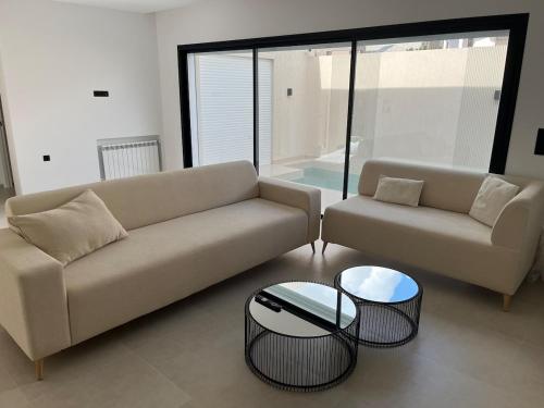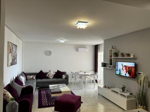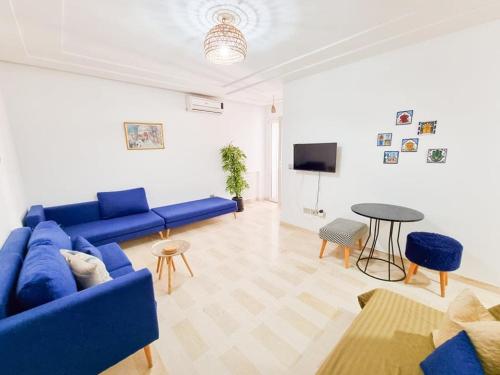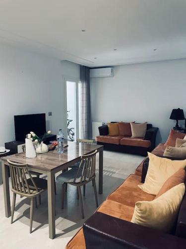 Superbe appartement la Terrasse Hammamet Nord Mrezga - Family only is located in Hammamet just a 18-minute walk from Hammamet Beach and 1.8 miles from Mrezga Beach. This apartment provides air-conditioned accommodations with a balcony and free Wifi. The apartment offers parking on-site an outdoor swimming pool and full-day security. Providing a terrace and mountain views the spacious apartment includes 1 bedroom a living room flat-screen TV an equipped kitchenette and 1 bathroom with a walk-in shower. Towels and bed linen are provided in the apartment. For added privacy the accommodation has a private entrance and soundproofing. Guests can take advantage of the property's barbecue facilities and save a trip to the supermarket by requesting grocery delivery. Neapolis Museum is 3.6 miles from the apartment while Kasbah of Hammamet is 5.9 miles away. The nearest airport is Enfidha-Hammamet International 39 miles from Superbe appartement la Terrasse Hammamet Nord Mrezga - Family only and the property offers a paid airport shuttle service.