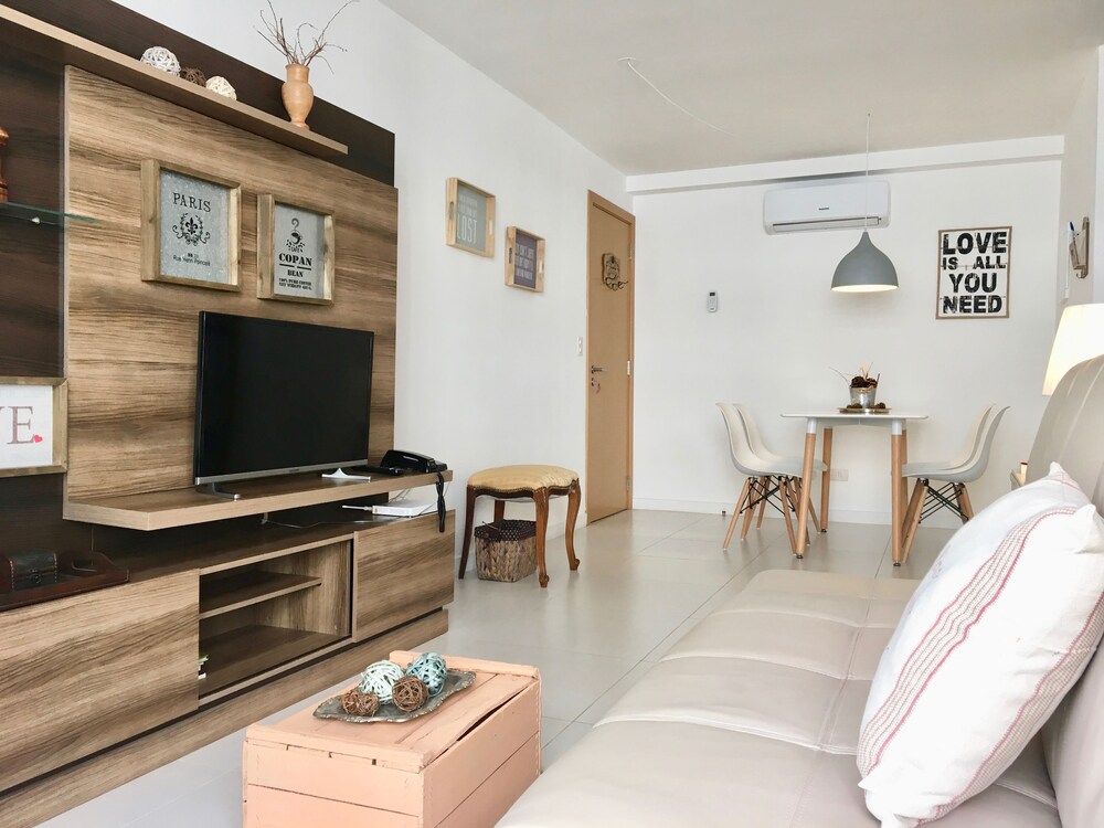 Featuring a seasonal outdoor swimming pool a fitness center and a garden Yoo Deluxe Apartamento provides accommodations in Punta del Este with free WiFi and garden views. Located a 18-minute walk from Mansa the property has a shared lounge and free private parking. The apartment has 2 bedrooms 2 bathrooms bed linen towels a flat-screen TV with cable channels a dining area a fully equipped kitchen and a balcony with pool views. The apartment offers a range of wellness facilities including an indoor pool and a sauna. A terrace is available on site and fishing can be enjoyed within close proximity of Yoo Deluxe Apartamento. Punta del Este Brava Beach is 1.4 miles from the accommodation while Punta del Este Bus Terminal Station is 1.6 miles away. The nearest airport is Capitán de Corbeta Carlos A. Curbelo International 11 miles from Yoo Deluxe Apartamento and the property offers a paid airport shuttle service.
