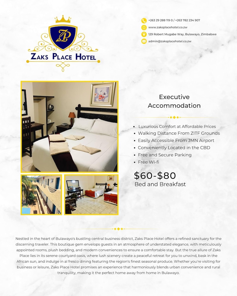 In the heart of Bulawayo, Zaks Place is close to Zimbabwe International Trade Fair and City Hall. This hotel is within close proximity of Bulawayo Railway Museum and Bulawayo National Gallery of Zimbabwe.